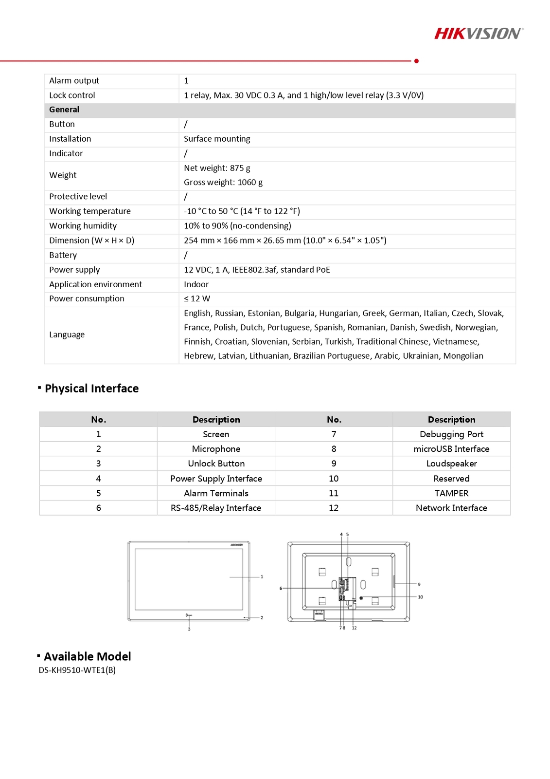 - Network Interface1 RJ-45 10/100 Mbps self-adaptive