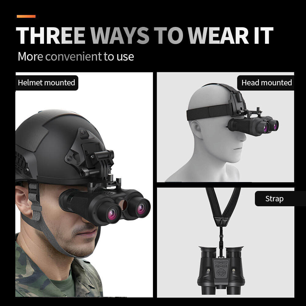 ♦ Small size, light weight, a variety of portable use, strap on the neck, strap portable head wear, tactical helmet head wear