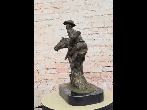 Crafted entirely from 100% bronze using the time-honored lost wax method, this piece features a rich brown patina that brings warmth and realism to the surface texture. From the folds in the cowboy's clothing to the fine musculature of the horse, every detail is finely sculpted and highlighted by the patina’s natural tonal variations.