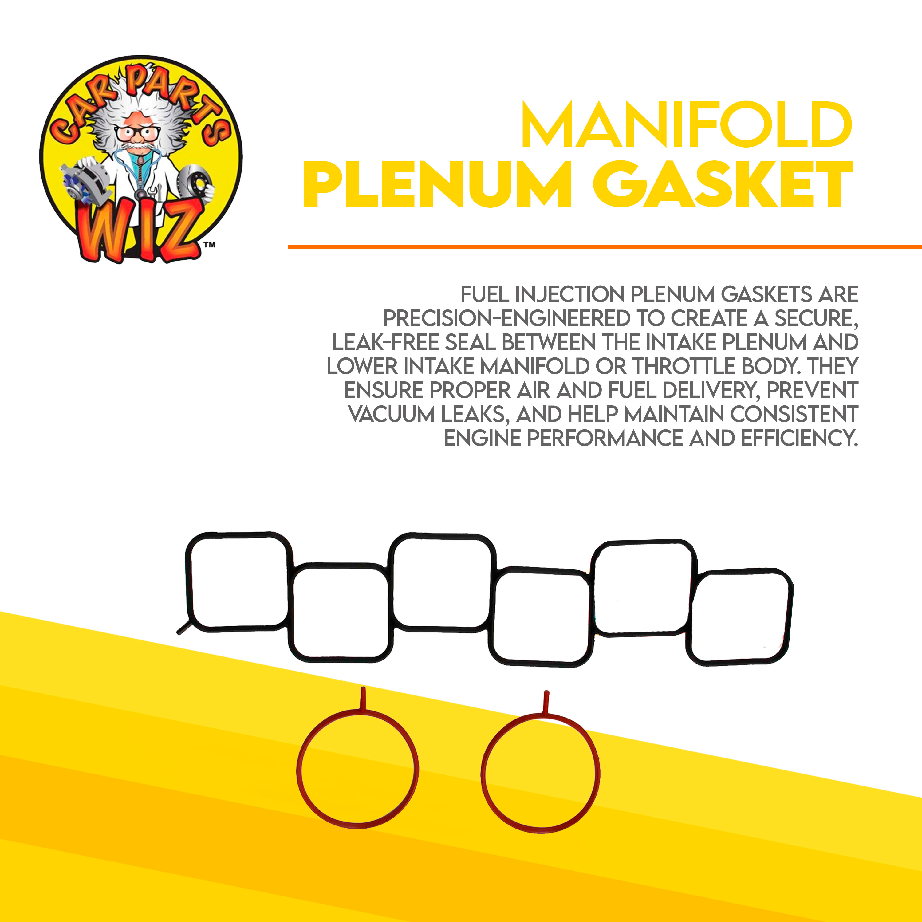 Fuel Injection Plenum Gaskets are precision-engineered to create a secure, leak-free seal between the intake plenum and lower intake manifold or throttle body. They ensure proper air and fuel delivery, prevent vacuum leaks, and help maintain consistent engine performance and efficiency.