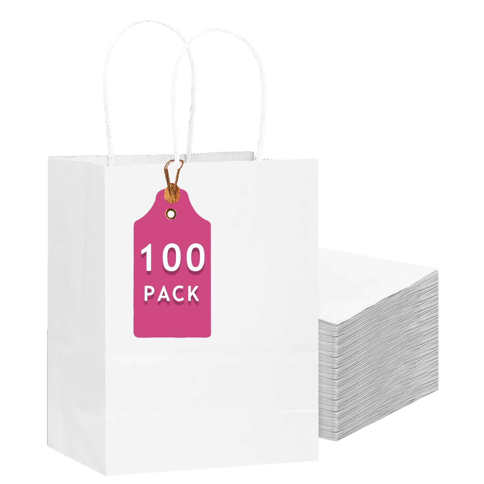 100-Packs White Paper Gift Bags with Handles 13"×10.2"×4.7" Large Size Gift Bags Multiple Uses