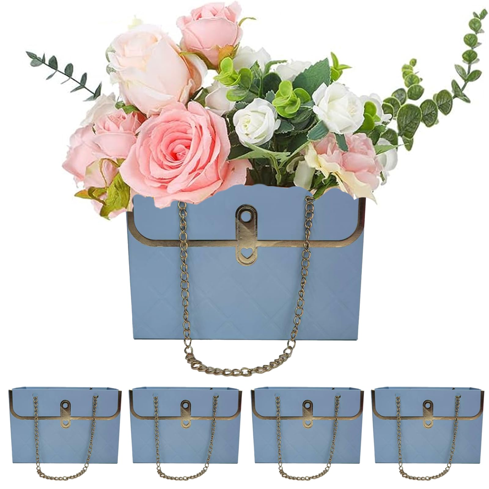 - Easy to Carry -- Flower paper box bouquet double chain handle design will offer a lot of convenience for you, easy to carry. Strong load-bearing capacity, not easy to break, smooth hand feeling and good texture, noble and elegant.