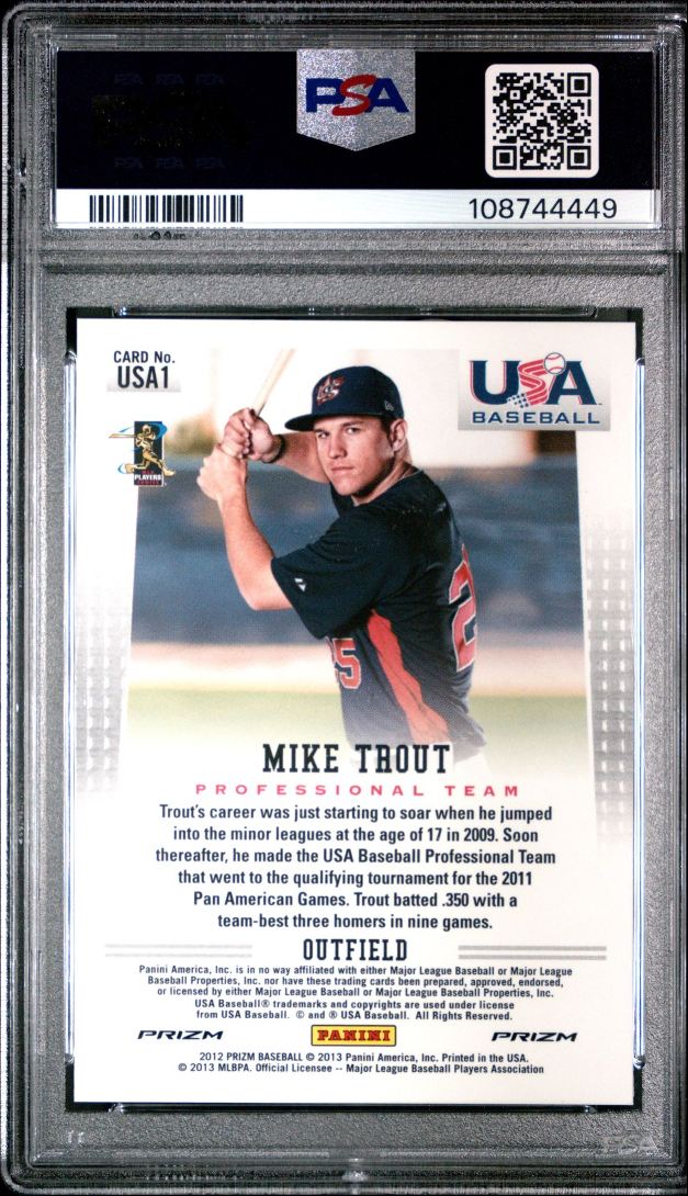 | 2012 Panini Prizm USA Baseball MIKE TROUT Silver Prizm SSP PSA 9 #USA1 | ||||||||||||||||||||