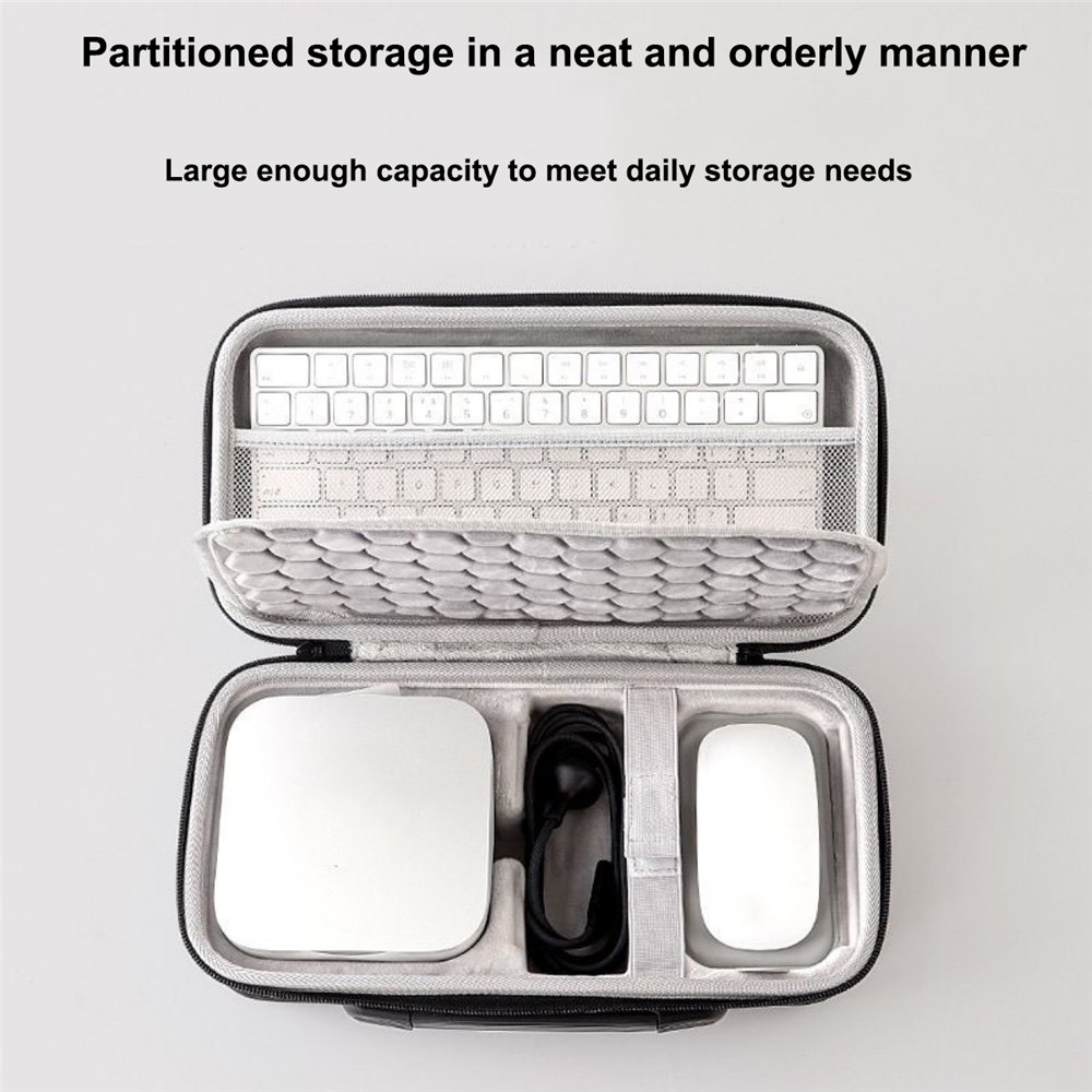 Multi-Functional Compartment Design: The bag features multiple compartments to neatly store the for  Mac mini M4/M4 pro and its accessories, such as power cables and a mouse and keyboard, keeping everything organized and easy to access.