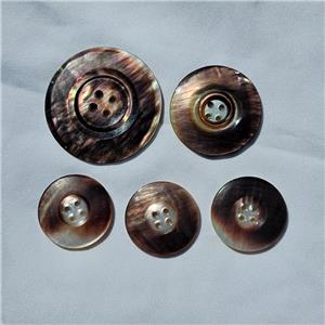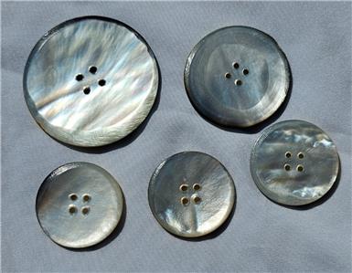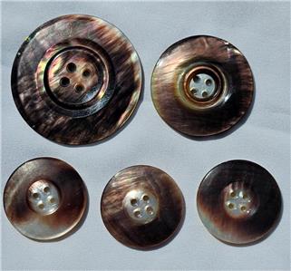 Vintage Mother of Pearl buttons. Round, iridescent white with wide flat brown rings. Has great depth, pictures don't do justice. 4 holes. Buttons measure 1 1/4" to 2". In excellent condition. Has possibly never been used.