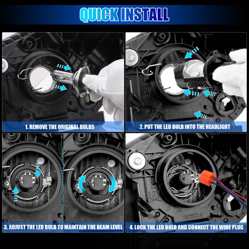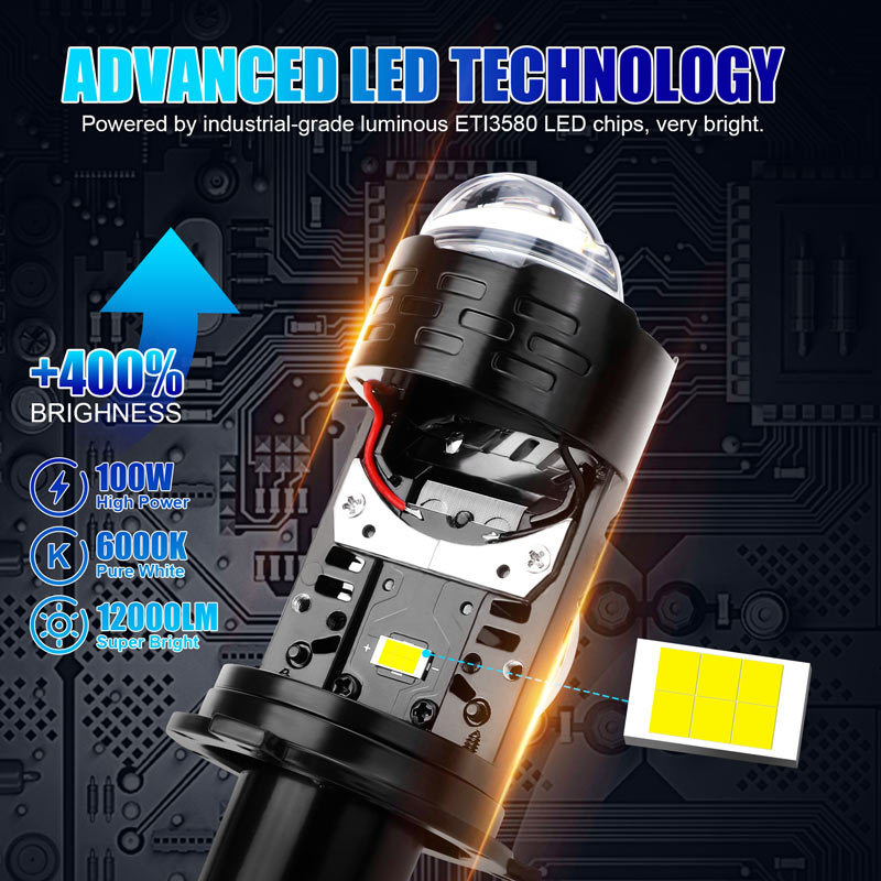 2X H4 Bi-LED Mini Projector Lens Headlight Bulb