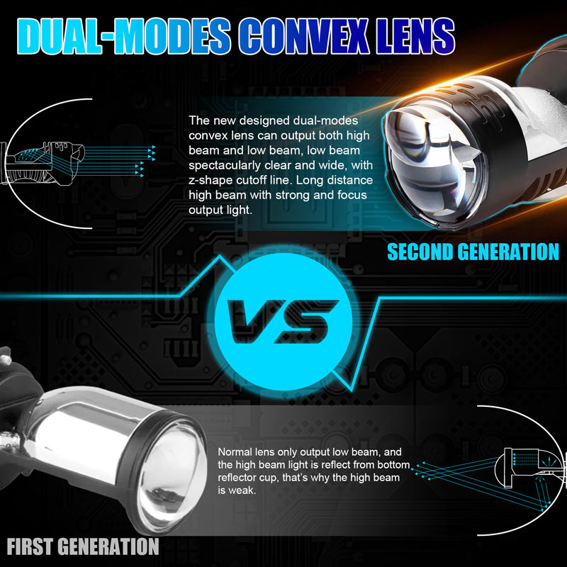 1, Hi-Lo beam, Low beam clear cut-off line, will not dazzle on coming vehicle, Rectangle high beam take light to a great distance.