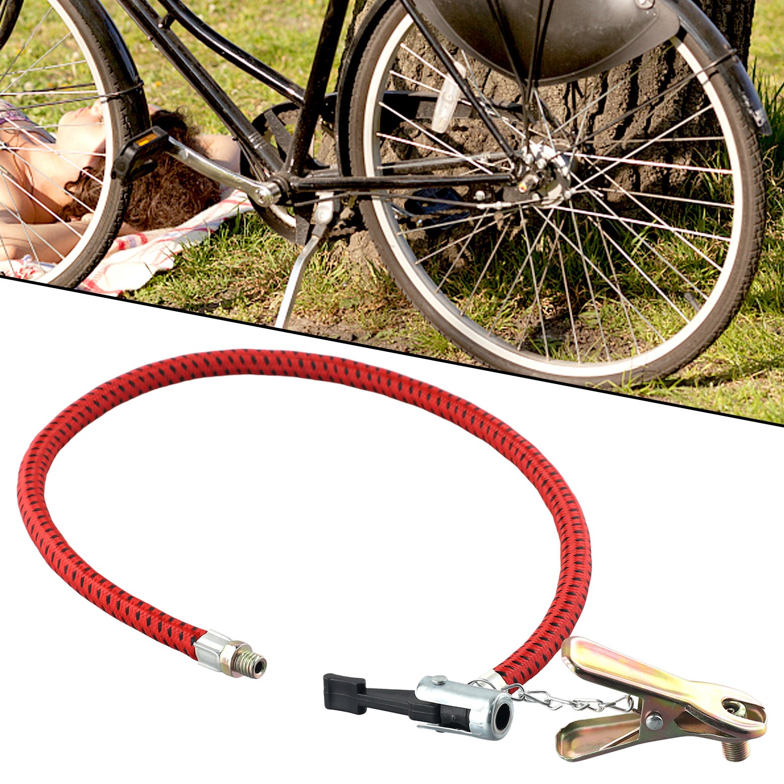 *Bike Bicycle Inflator Hose Motorcycle Air Pump Tube With Clip UK Nozzle 60cm