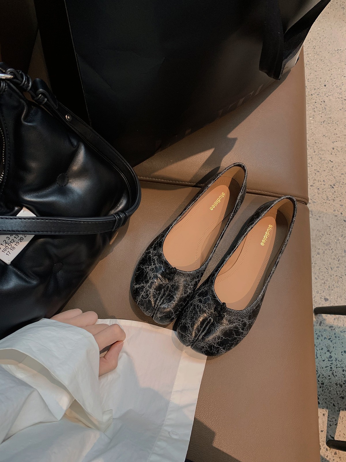 Womens Split Toe Flat Shoes Leather Shallow Mouth Thick Heels Mary Jane Shoes