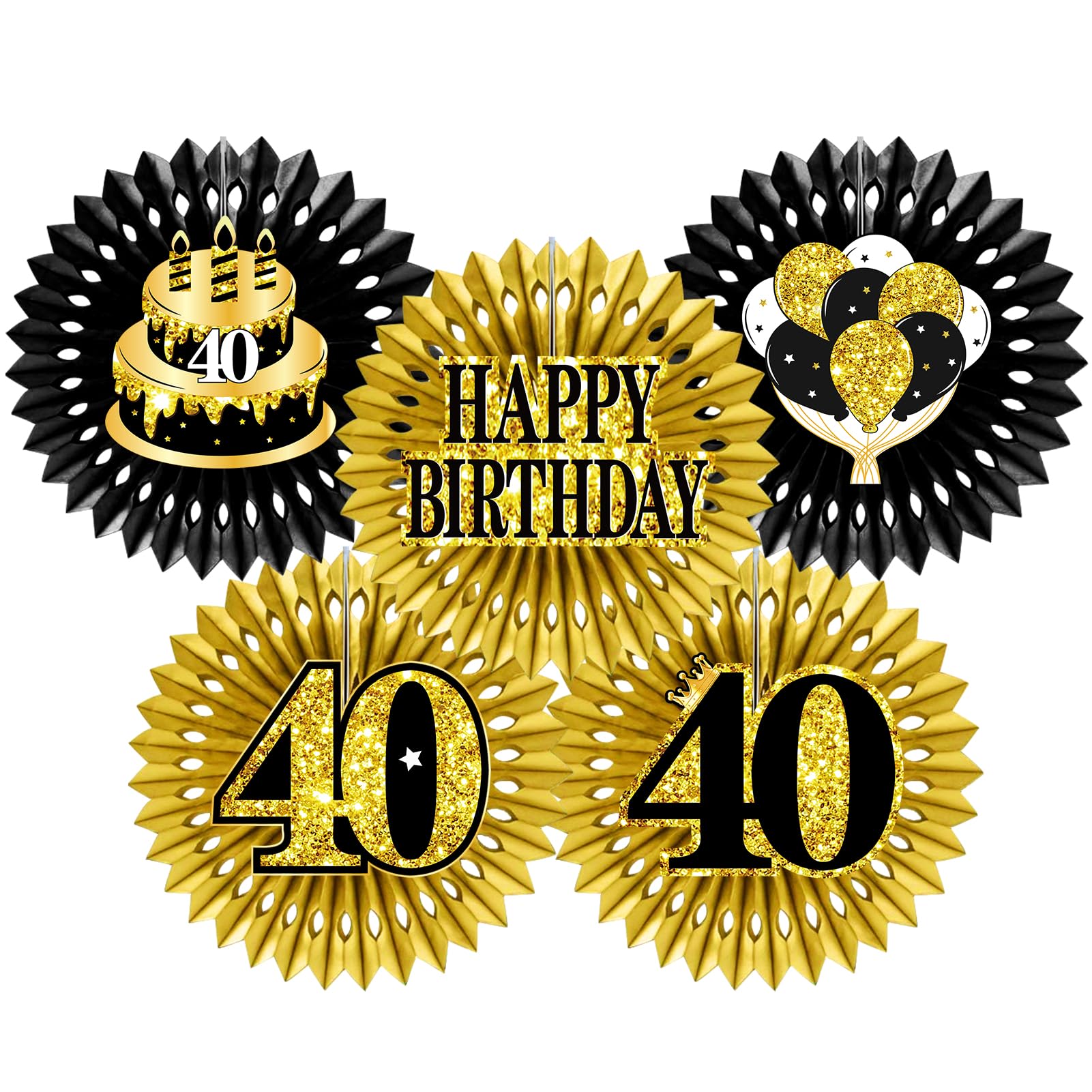 Black Gold 40th Birthday Decorations Set 40 Hanging Honeycomb Round Paper Fans