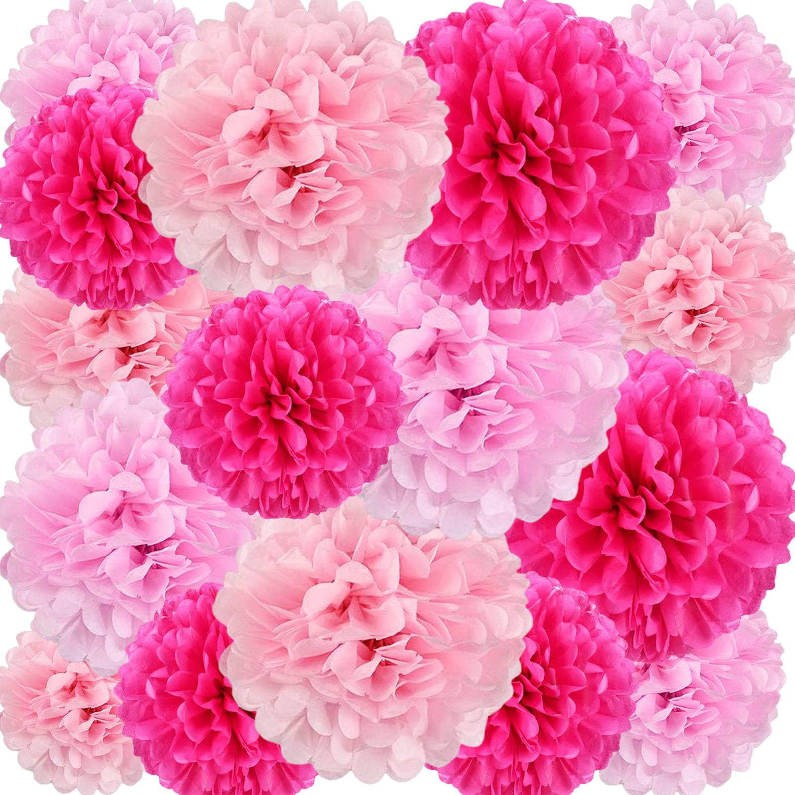 - 【Large&Colorful Paper Pom Poms】The decoration kit includes 6 of 6-inch, 6 of 10-inch, 3 of 12-inch, and 3 of 14-inch paper flower balls, totaling 18 pieces of paper flower balls, a curated selection of 3 vibrant colors including pink, light pink, rose red. Allowing for a stunning and varied display, make your event beautifully unforgettable!