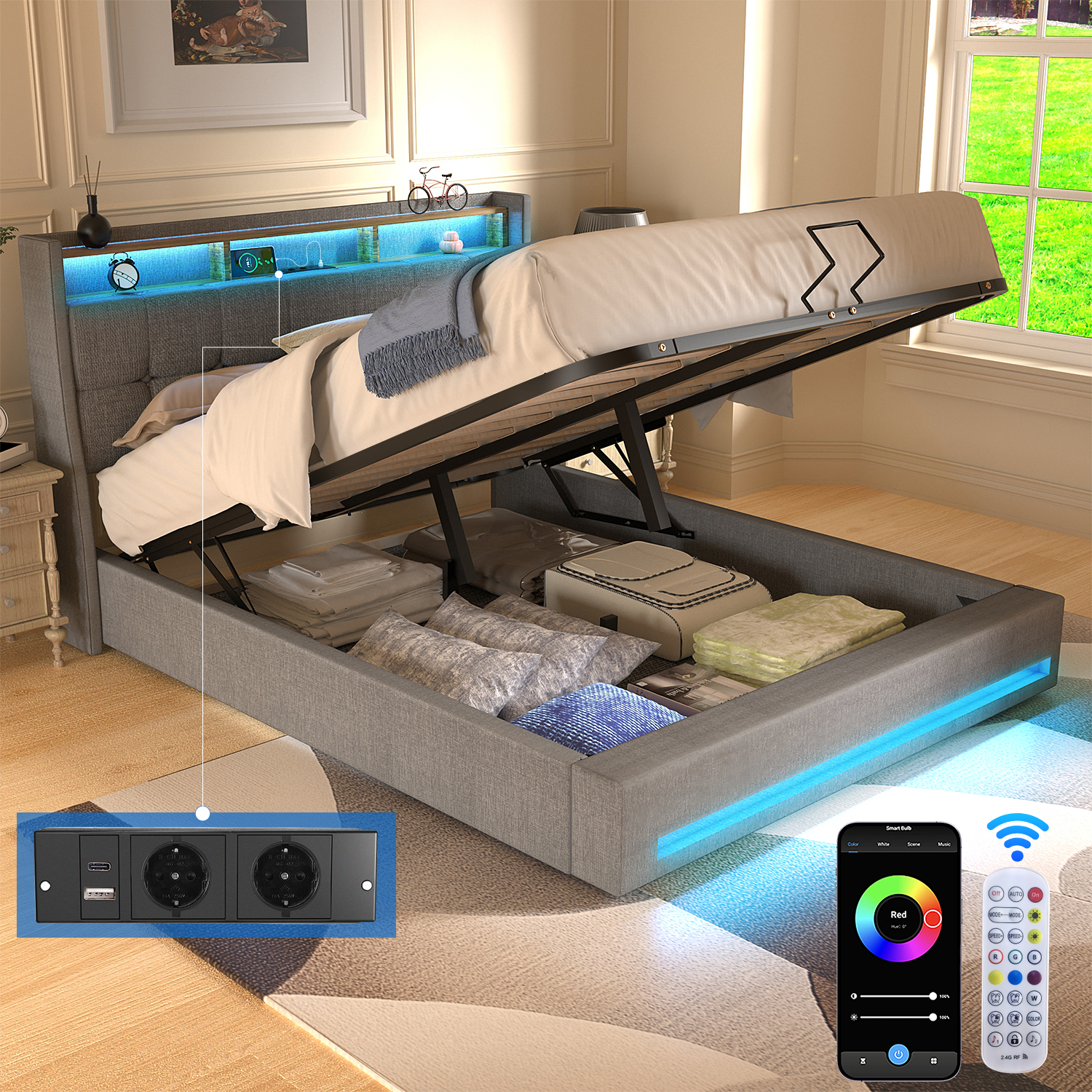 Polsterbett 90x200cm Doppelbett Stauraumbett Bettgestell mit USB/LED Lattenrost
