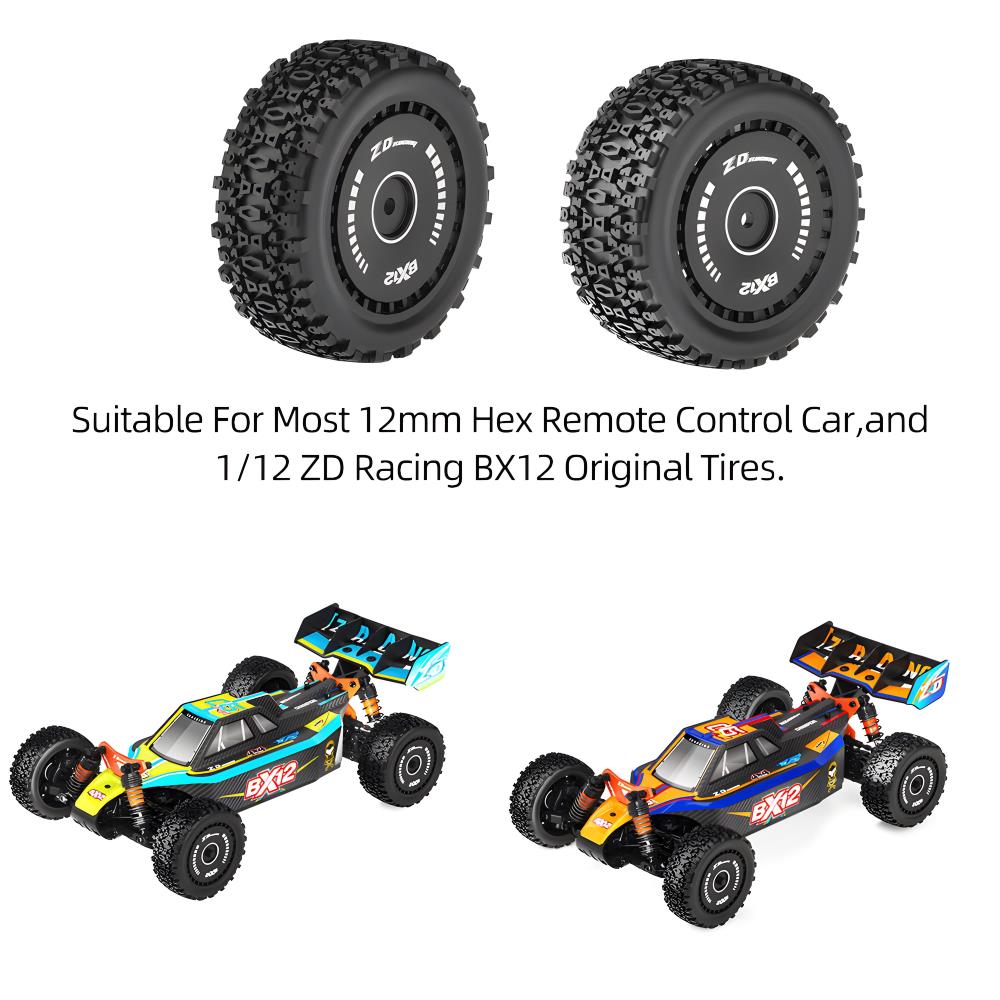 Original Tires. Features: 1. Made of rubber material,which is soft and elastic, with strong groundadhesion and friction resistance. 2. High Wear-resistant High Crush-resistant. Will not easily detach during rapid movement of the racing car. 3. Suitable For Most 12mm Hex Remote Control Car, ZD Racing 1/12 BX12 Original Tires. 4. These wheels with its terrific quality and performance, it can satisfy the needs of the RC Model. Let you enjoy more fun.