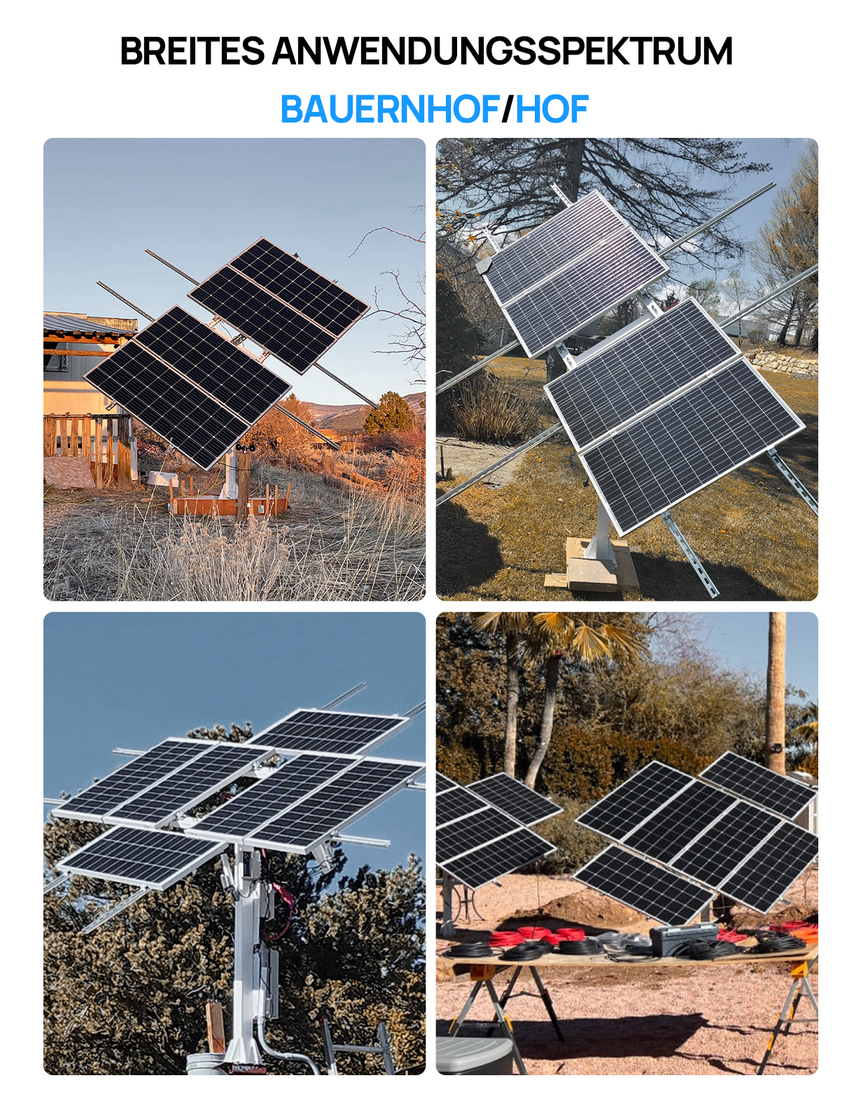 Installation nimmt nur 0,0484m² Fläche ein, spart 90% Installationsfläche: Tracker-Installation nimmt nur 0,0484m² Fläche ein, im Vergleich zu der traditionellen Halterung, um 90% Installationsfläche zu sparen, sehr geeignet für kleine Hof / Bauernhof Installation.