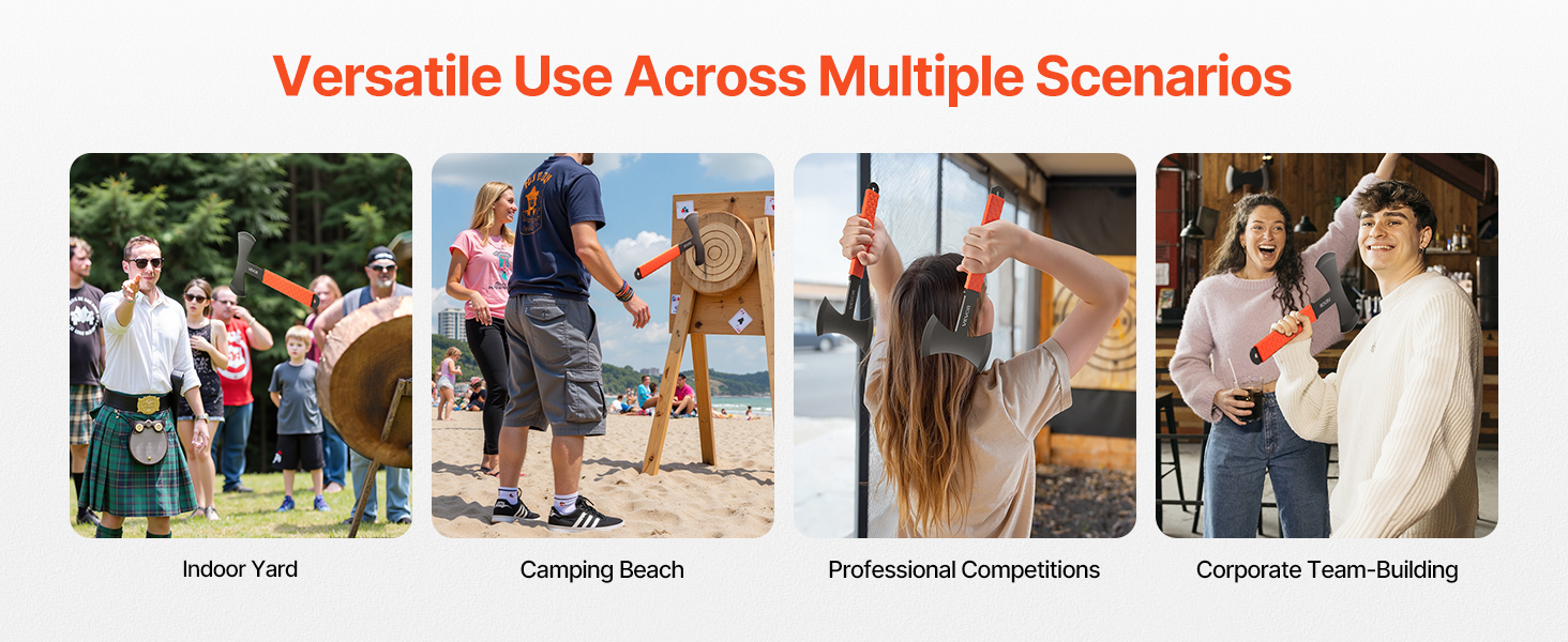This multifunctional throwing axe set is designed for home entertainment and outdoor enthusiasts, featuring balanced weight distribution, durable materials, and portability—ideal for accurate throws and fun interactions at parties, competitions, and outdoor events.