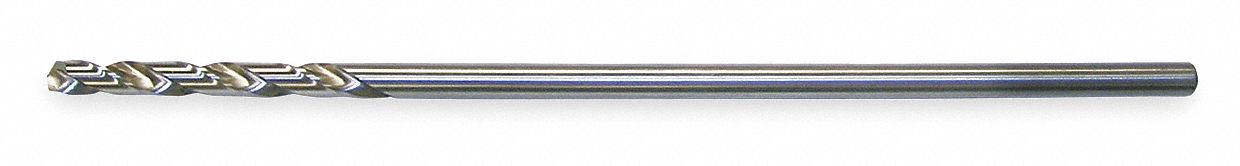 Extra Long Drill Bit, Drill Bit Size #40, Drill Bit Point Angle 135 Degrees , Split Point, High Speed Steel, Bright (Uncoated), 21 Degrees to 34 Degrees , Material Grade - Machining High Performance, Maximum Drilling Depth 25/64 in, Wire, 4xD