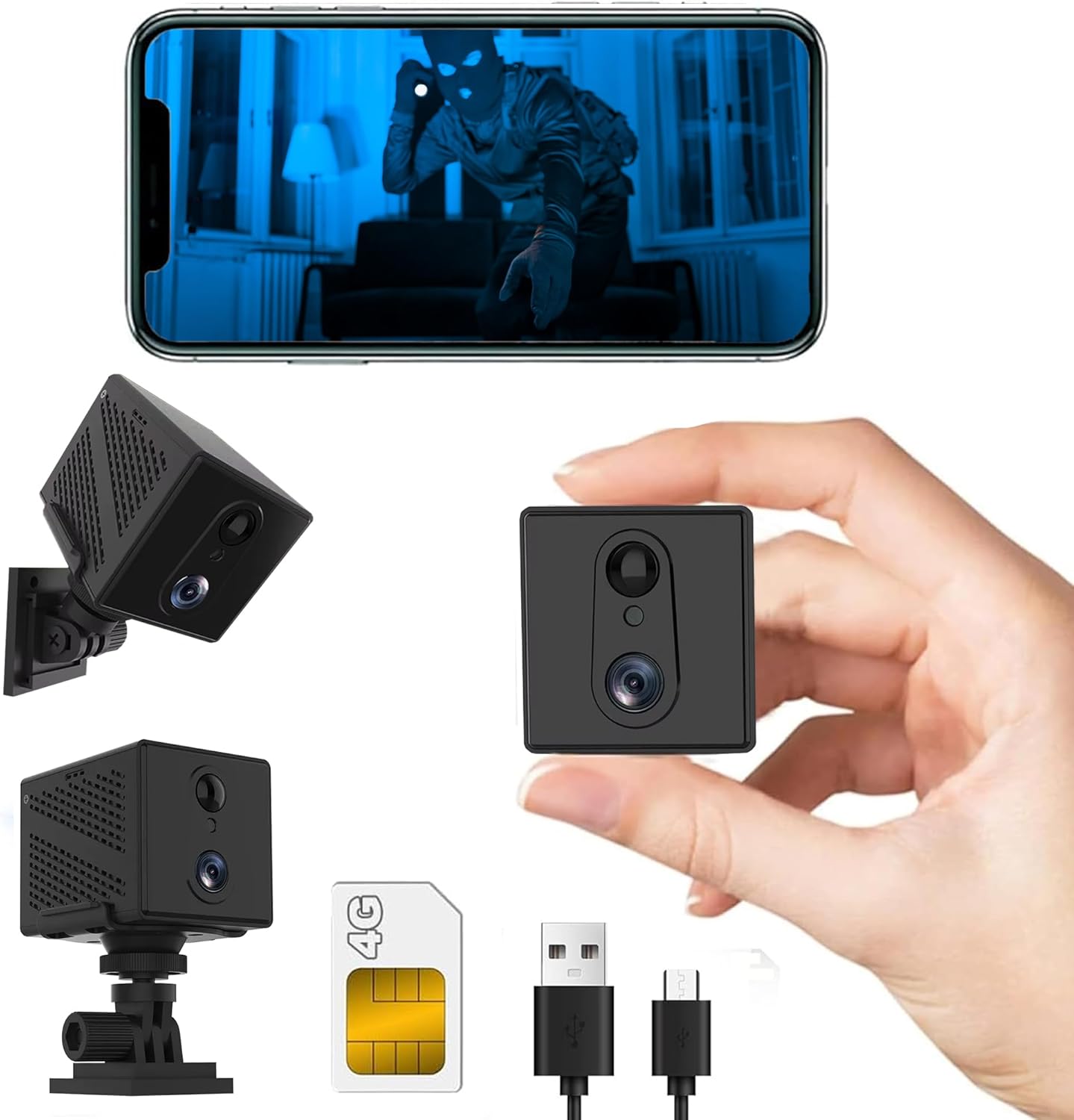 No WiFi Security Camera with SIM Card FREE SD card 4G LTE Cellular Security 5200mAh Battery, 1080P HD Car Mini 4G Camera, 160 Wide View, Motion Detection Alert, 10m Night Vision