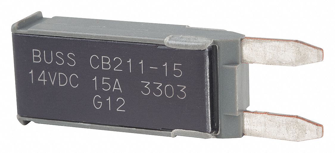 Automotive Circuit Breaker, Mount Type Plug In, Mount Style Surface, Current Rating 15 A, Voltage Rating 14V DC, Interrupt Rating 225 A at 14V DC, Terminal Connection Blade, Circuit Breaker Type Type I Footprint Circuit Breaker, Compatible Product Type ATM Fuse Footprint, Compatible Vehicle Type Boats, Buses, RVs, Trucks, Housing Material Thermoplastic/Metal, Overall Depth 1/2 in, Overall Height 1/4 in, Overall Width 1 7/16 in, Reset Type Automatic, Series CB211