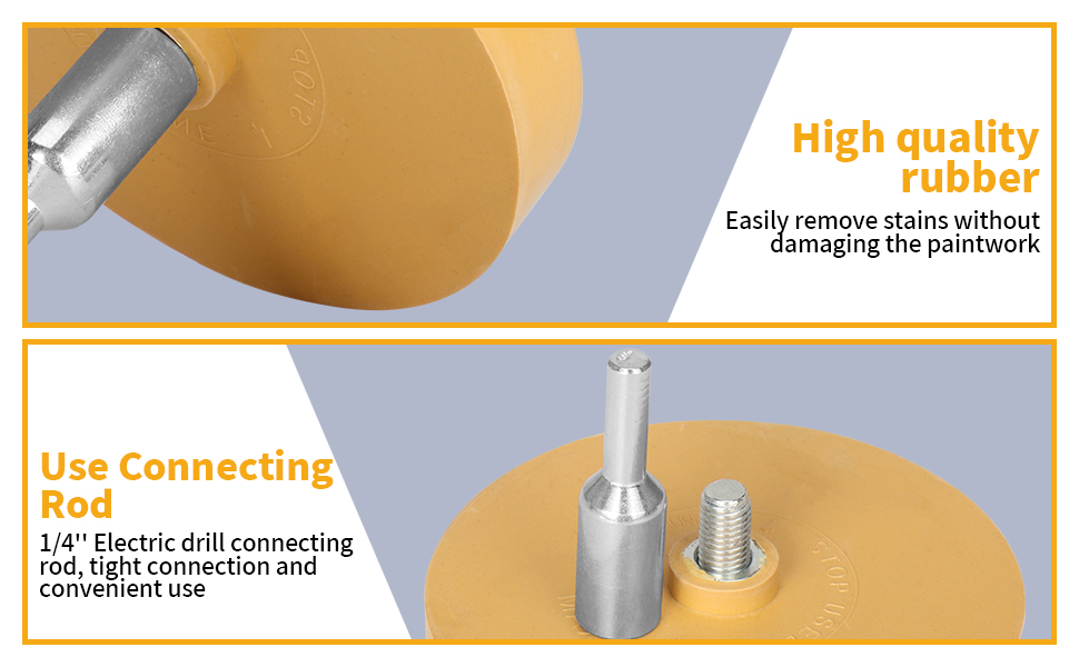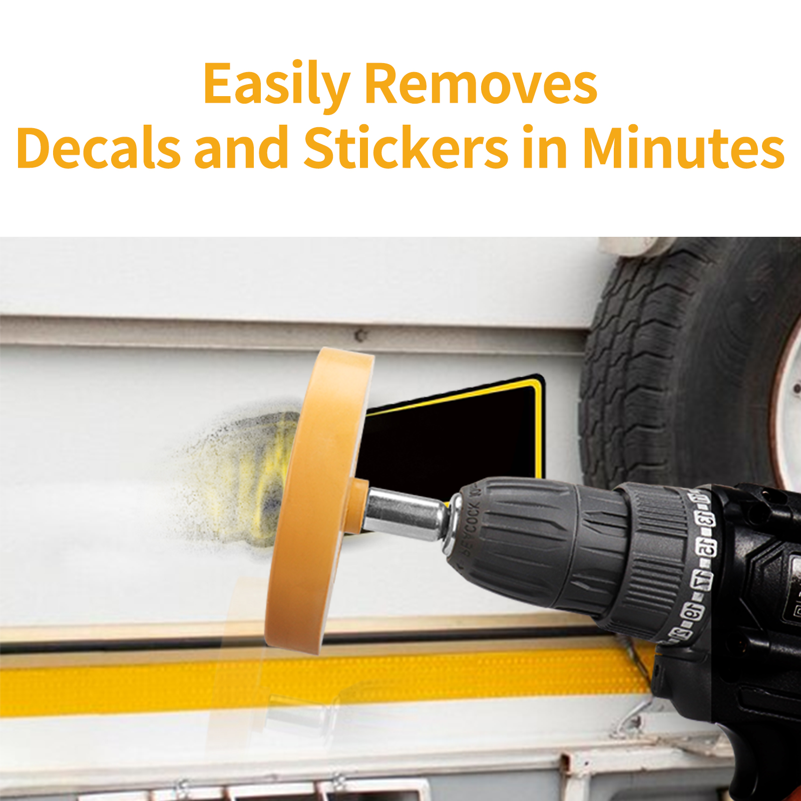 Universal Drill Adapter-Attach the included drill adapter to your rubber wheel and a household drill to quickly remove sun-baked vinyl stickers and car wrappings in seconds. Best working between 1500-3000 RPM, Max 4000 RPM.