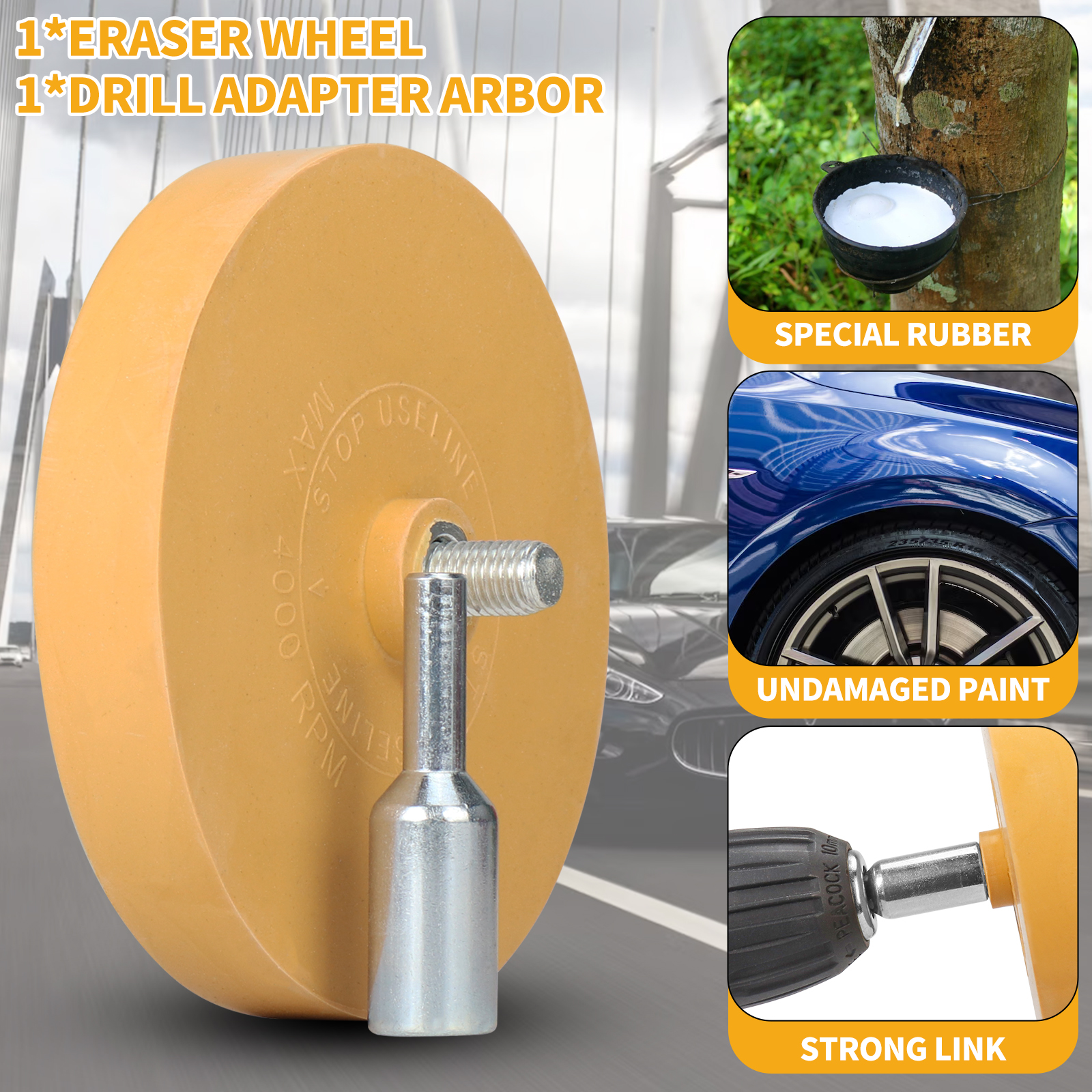Safe DIY Work-The eraser wheel is perfect for the hardest decal and sticker removal jobs without gouging or scratching the paintwork or touching toxic chemicals.