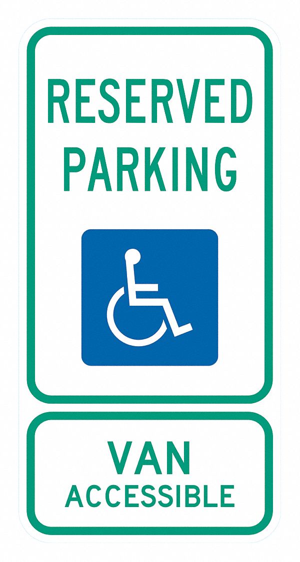 ADA Handicapped Parking Sign, Height 24 in, Width 12 in, Sign Material Aluminum, Sign Mounting Style Mounting Holes, Printed Language English, Sign Shape Vertical Rectangle