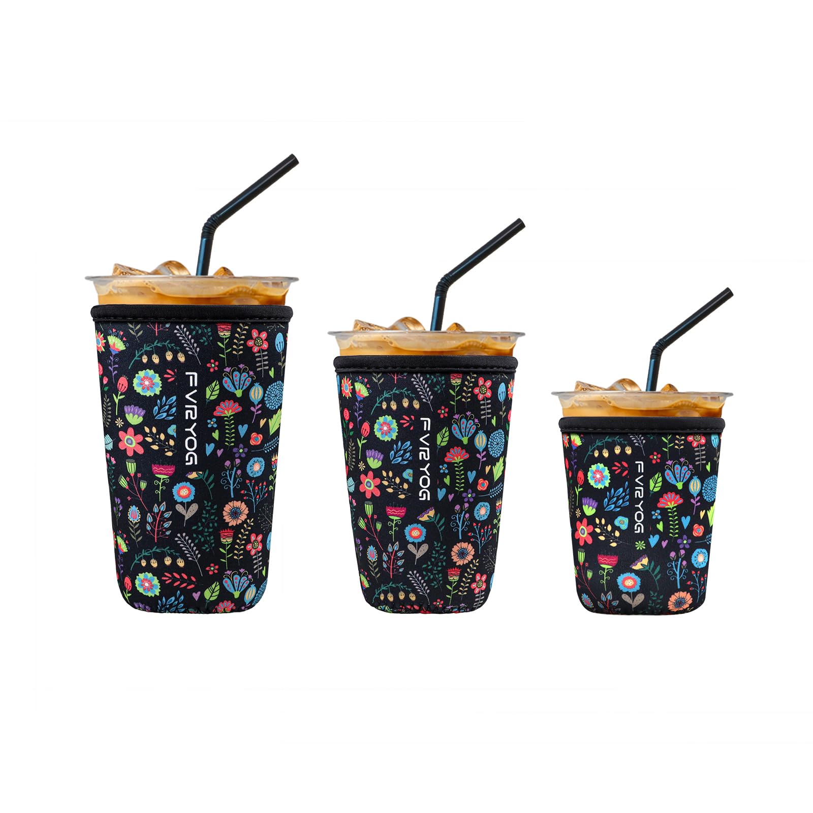 3 Pack Reusable Insulated Neoprene Iced Coffee Sleeves & Coffee Cup Holder, Universal Fit 16-32oz Cups for Hot/Cold Beverages