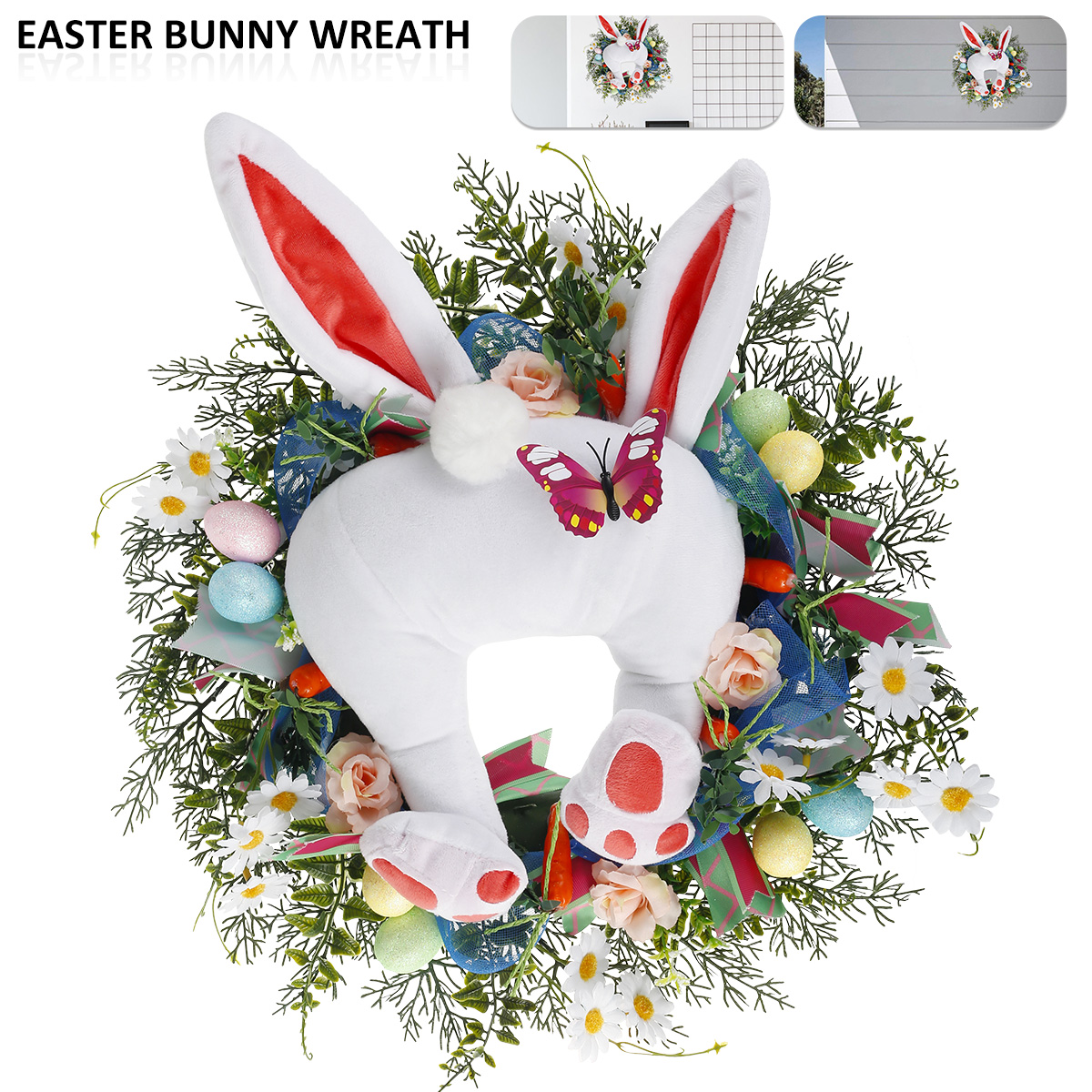 [Perfect Festival Decoration]: The cute bunny wreath matched with vivid flowers, green leaves and butterfly is a perfect Easter decoration, adding a pleasant festival atmosphere to your home. The vivid appearance is easily welcomed and enjoyed by most children.