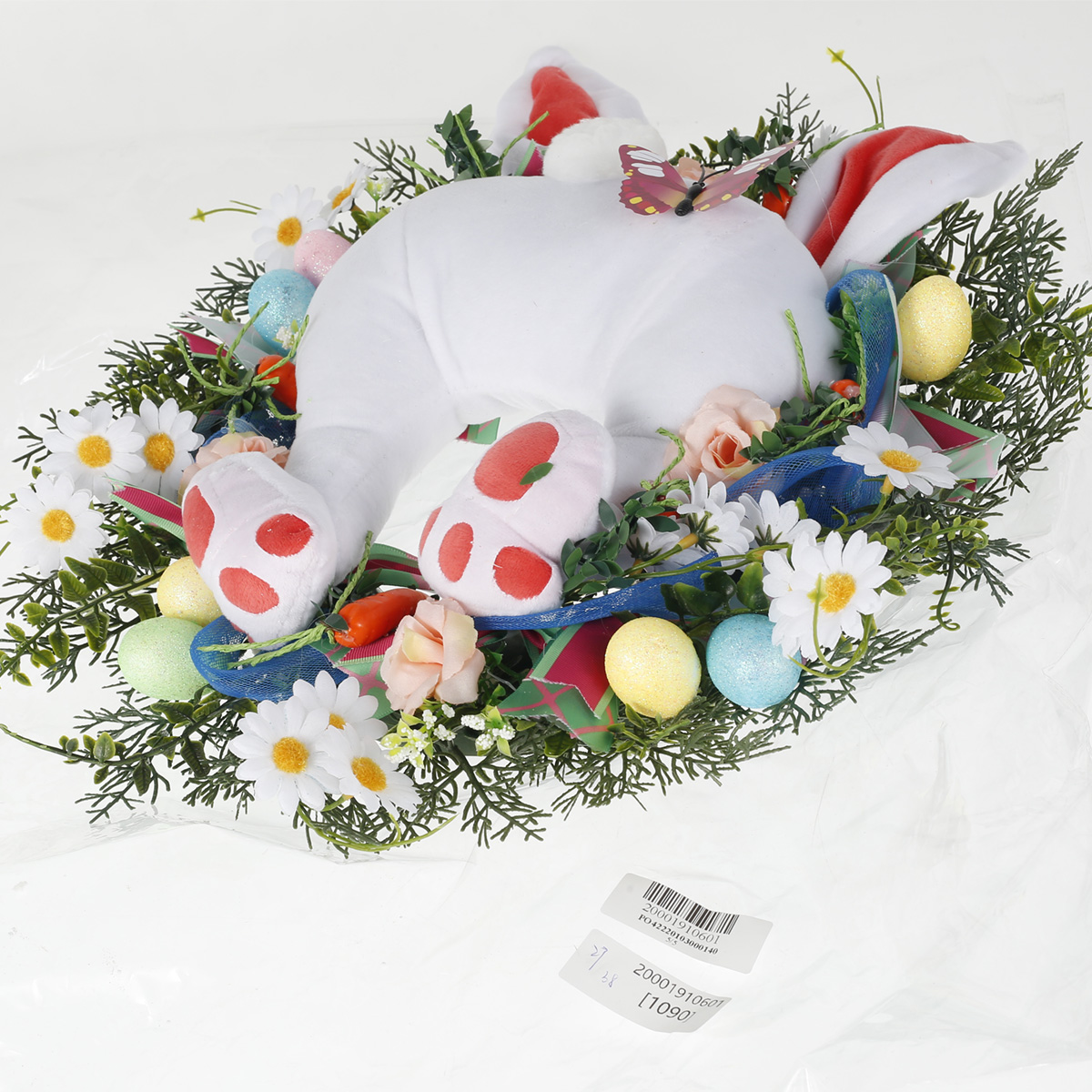 [Safe and Eco-Friendly]: This colourful Easter plush bunny wreath is handmade from pure cotton fabric and PVC cane, safe and environmentally friendly. The cute bunny is built-in polypropylene cotton, which is finely crafted, soft and comfortable.