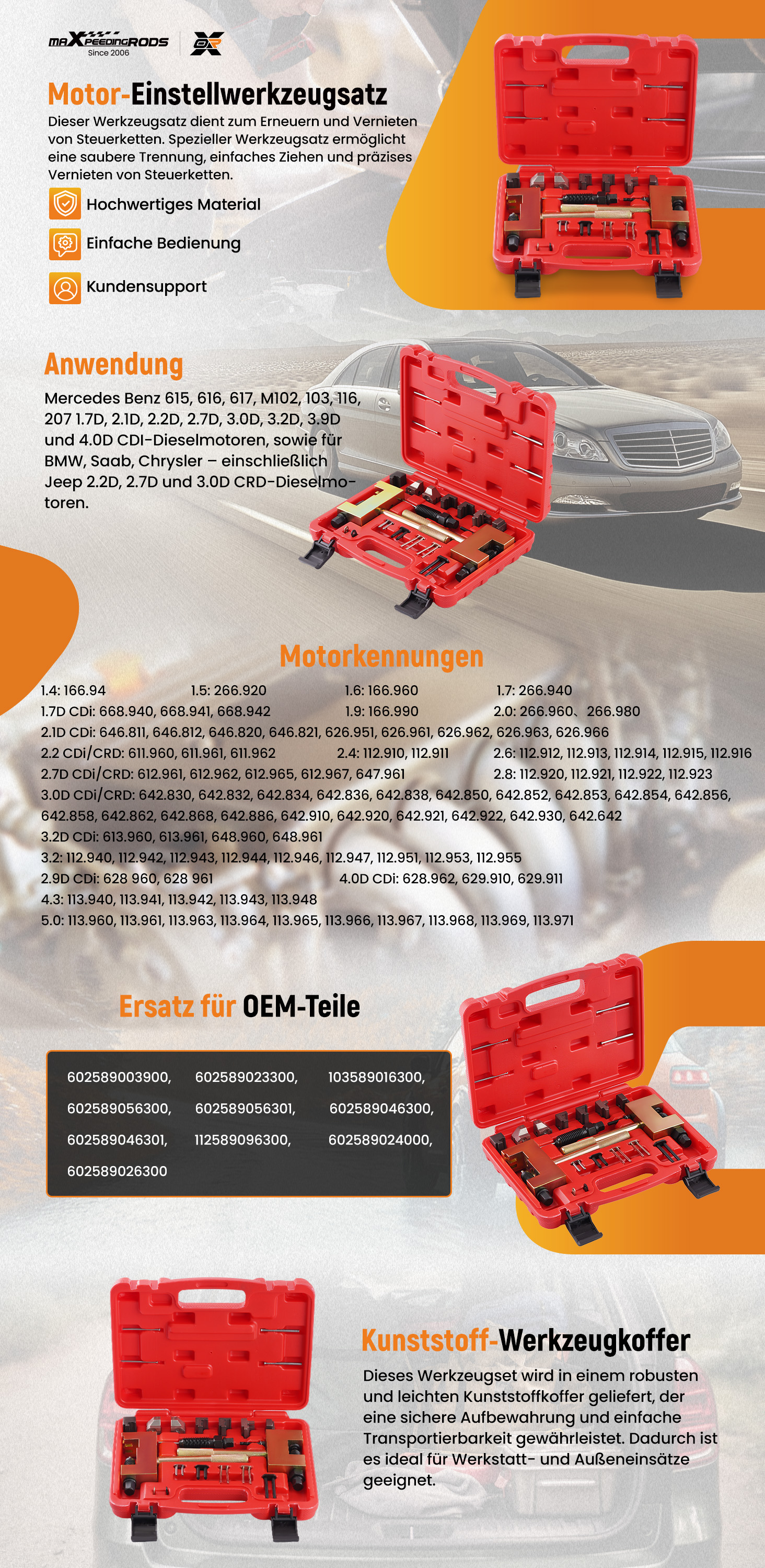Engine Camshaft Timing Chain Riveting Tool Kit fit Benz M271 M272/M273 Roller