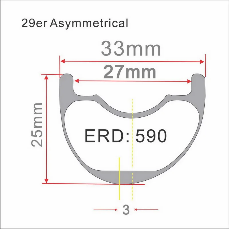 Lite Weight 29ER mtb carbon rims 33mm Width asymmetrical