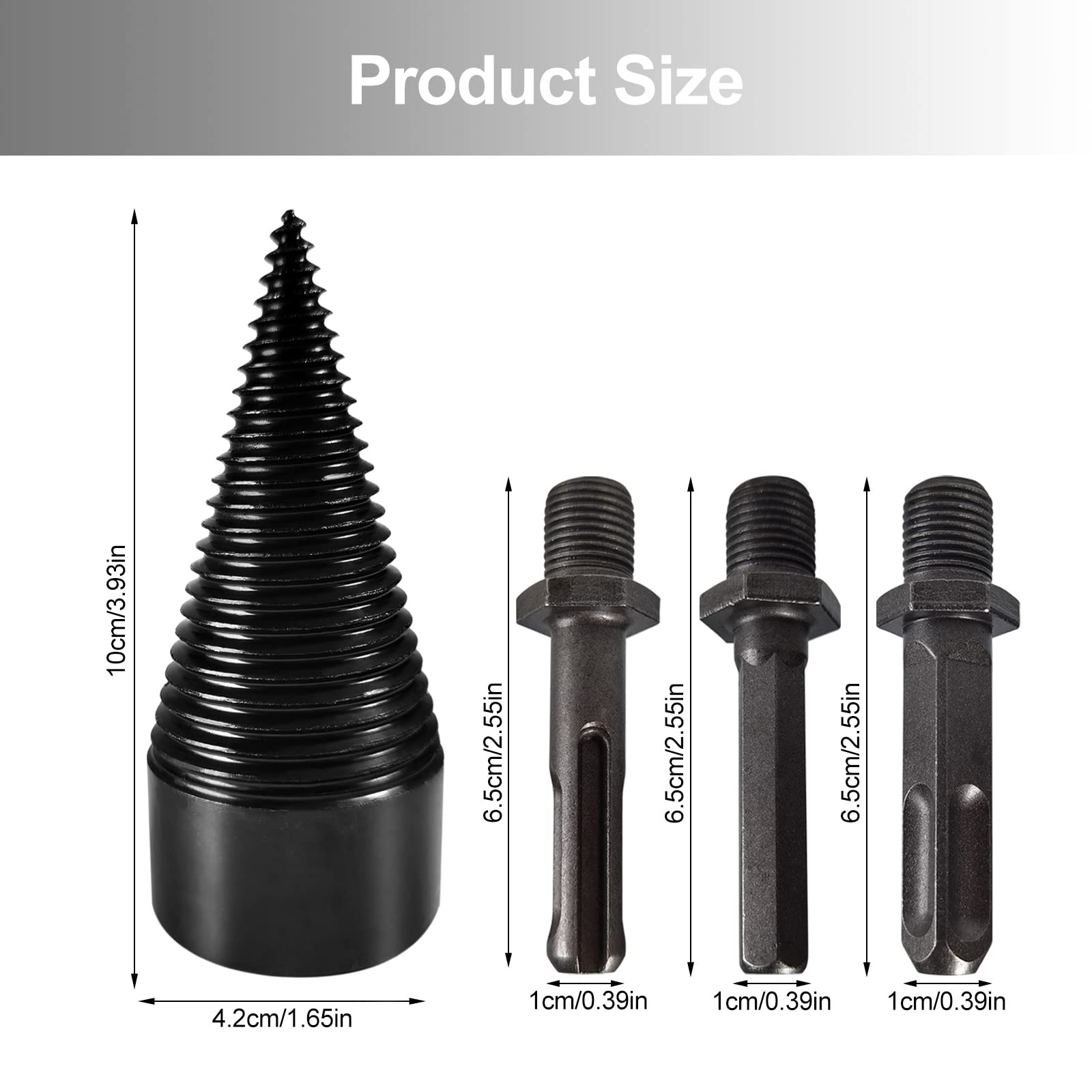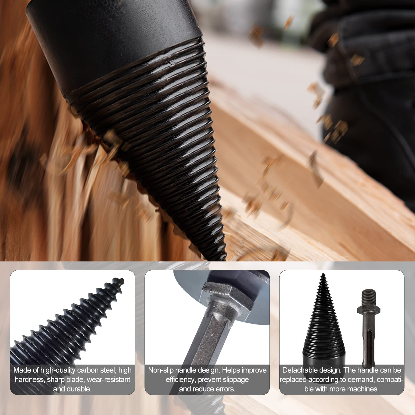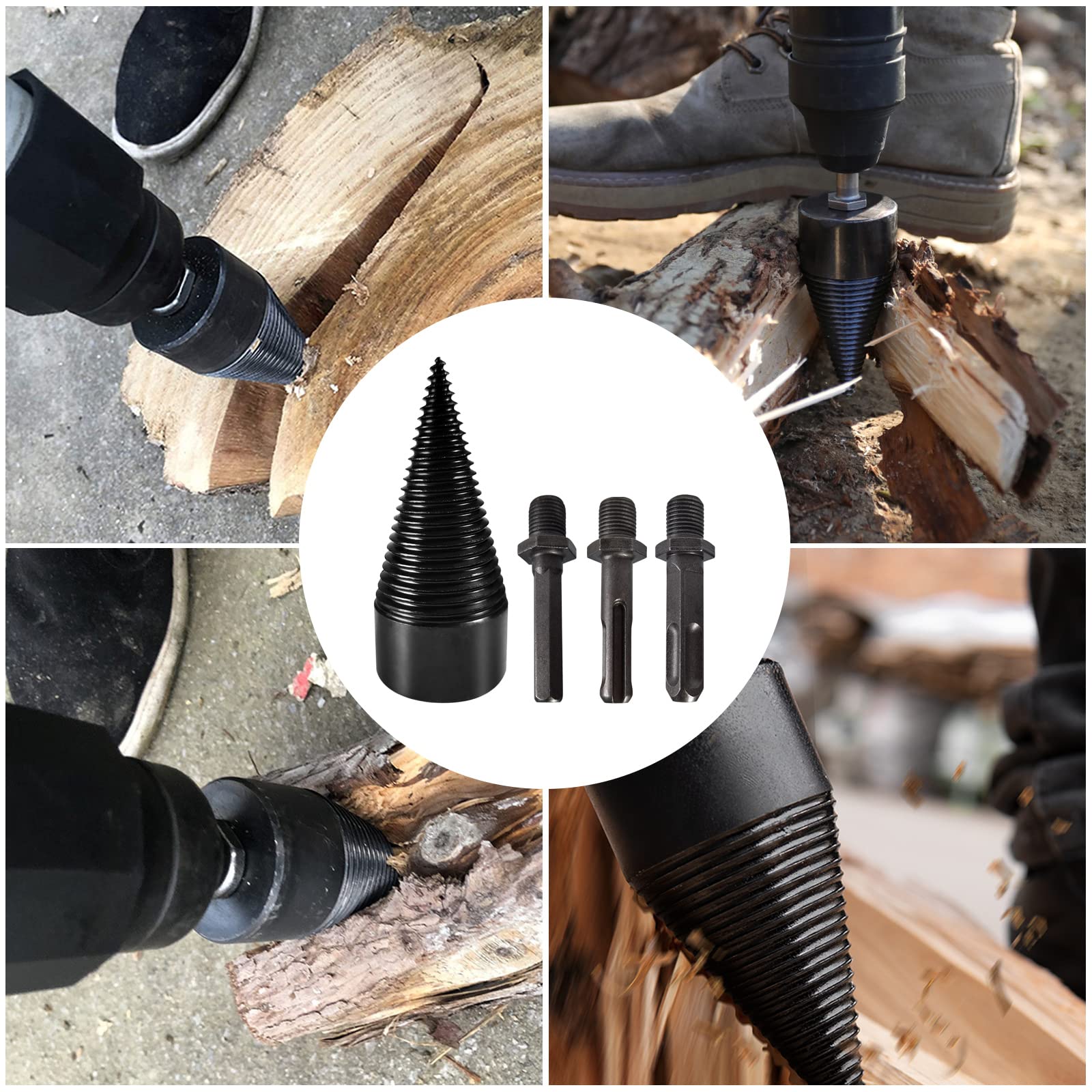 PEESHON Spaccalegna a vite cono 42 mm, 3 manici per trapano, coni per legno
