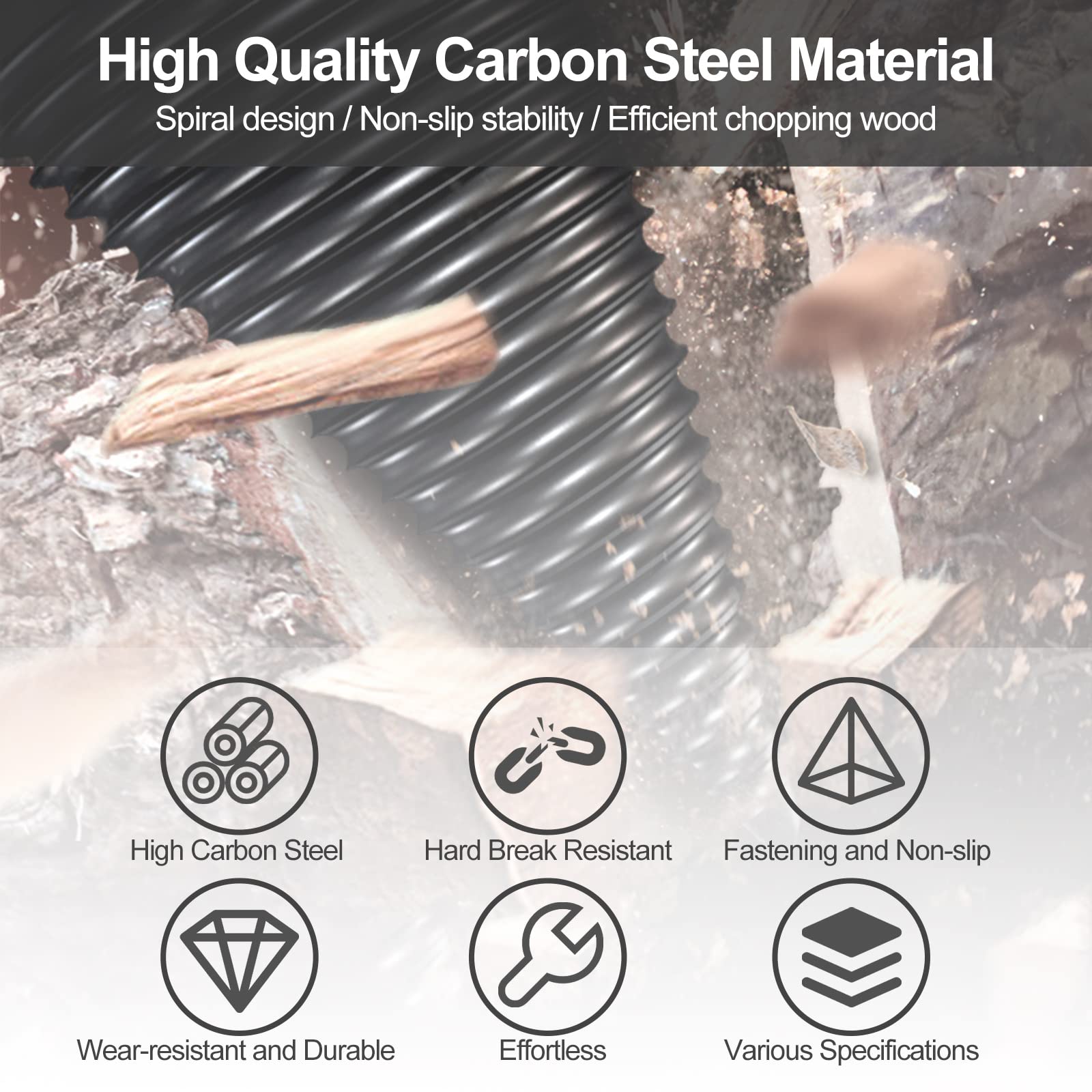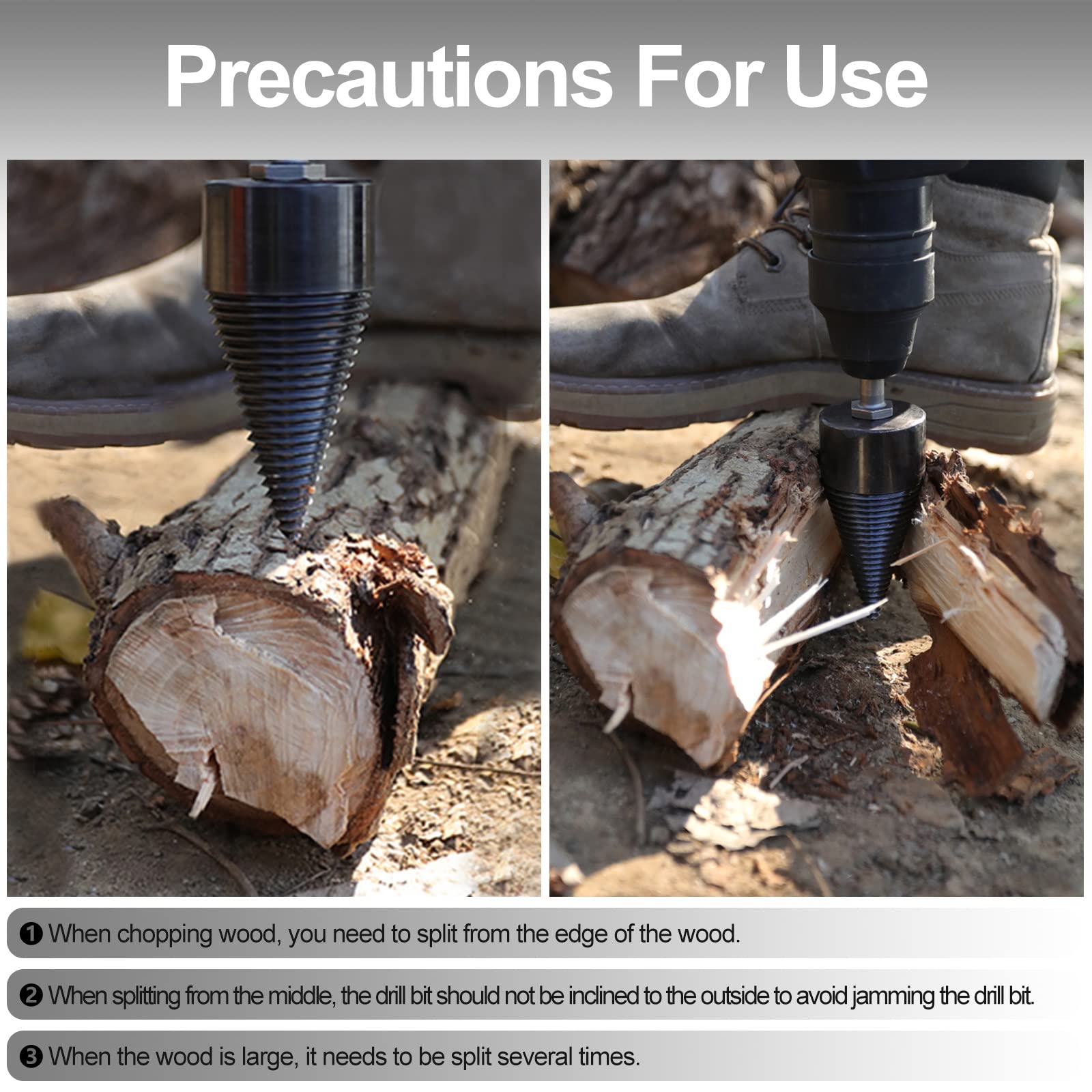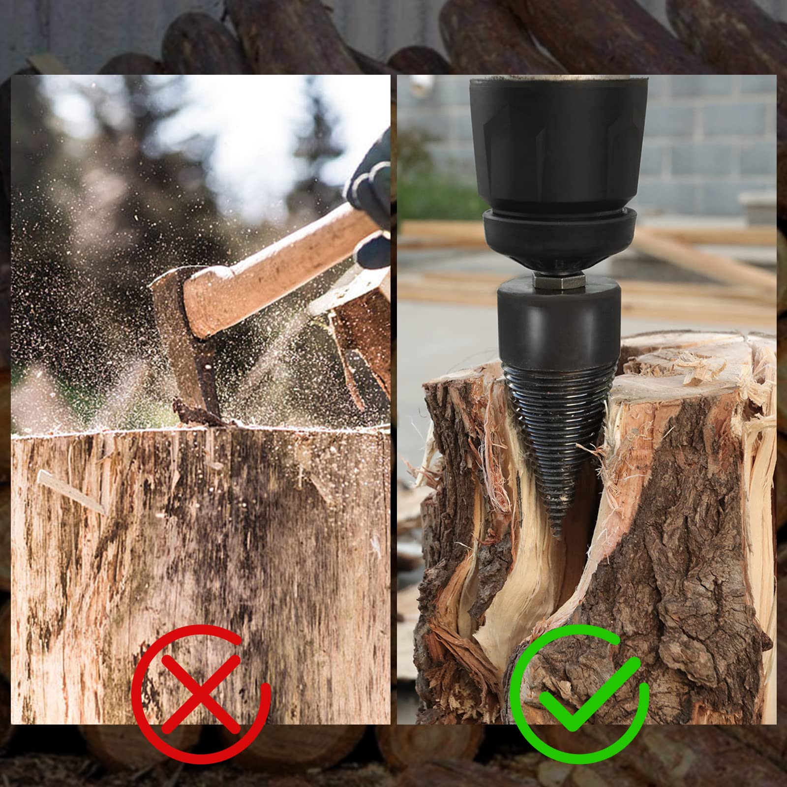 PEESHON Spaccalegna a vite cono 42 mm, 3 manici per trapano, coni per legno