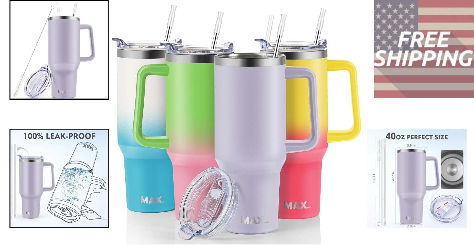 Light Purple 40 Oz Leakproof Stainless Steel Mug with Straw - Perfect for Travel