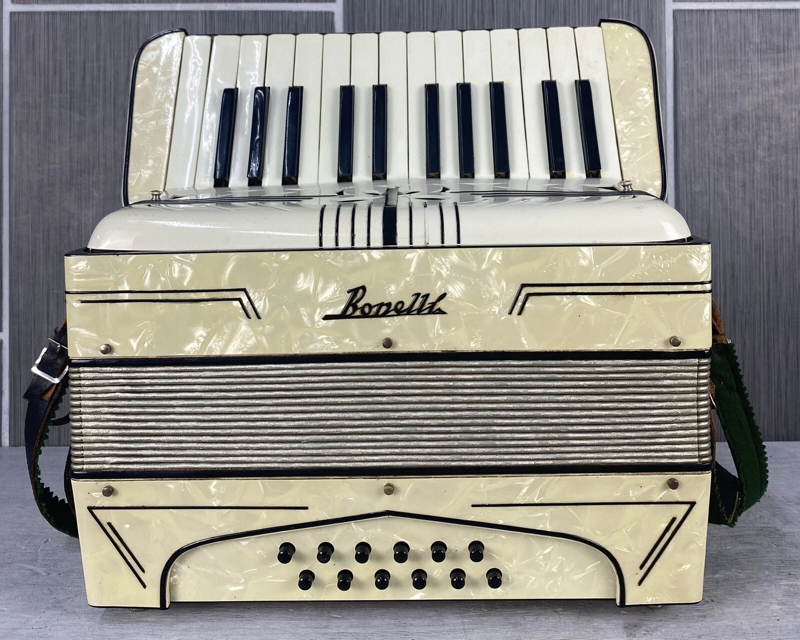 Bonelli Vintage Accordion 12 Bass 25 Key W/ Carrying Case & STRAP MADE IN ITALY