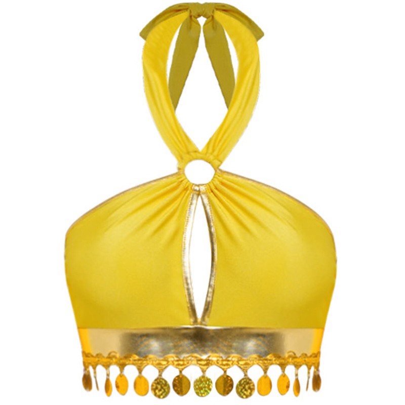 The self-tie halter keyhole front design of the crop top adds a touch of fashion, making it a trendy choice for belly dance.