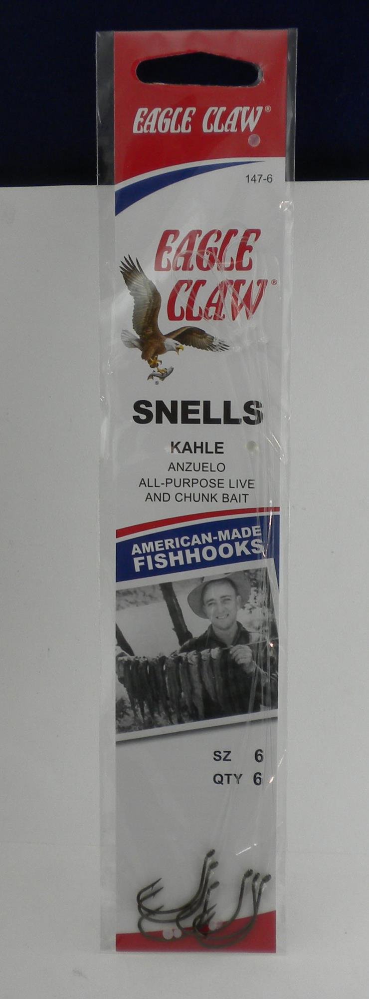 EAGLE CLAW 147#1/0 Card of 6 BRONZE KAHLE SNELL HOOK