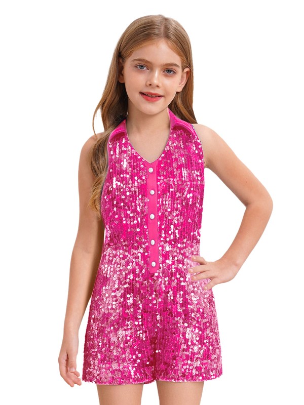 The allover sequins on the jumpsuit are sparkle and shine, creating a glamorous and eye-catching look that makes your girl stand out in the crowd.