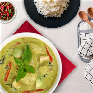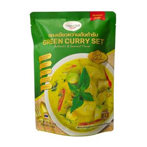 Enjoy the creamy, aromatic, and slightly spicy flavors of authentic Green Curry, restaurant-quality, in every bite! It is easy to make. Add your favorite protein (chicken, pork, or beef), follow simple steps, and enjoy a delicious Green Curry in minutes. Vegetables do go well with Green Chili so you may wish vegetables of your choice such as egg plants, zucchini, bell peppers, or bamboo shoots.
