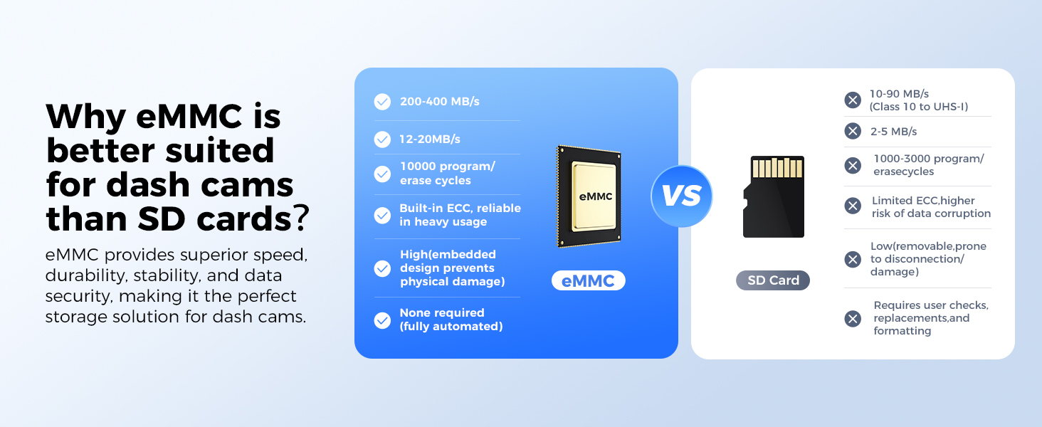 ✨ Die 128GB eMMC (Embedded Multi Media Card) ist in der AZDOME Dash Cam für die Speicherung integriert, so dass keine zusätzliche SD-Karte gekauft werden muss.