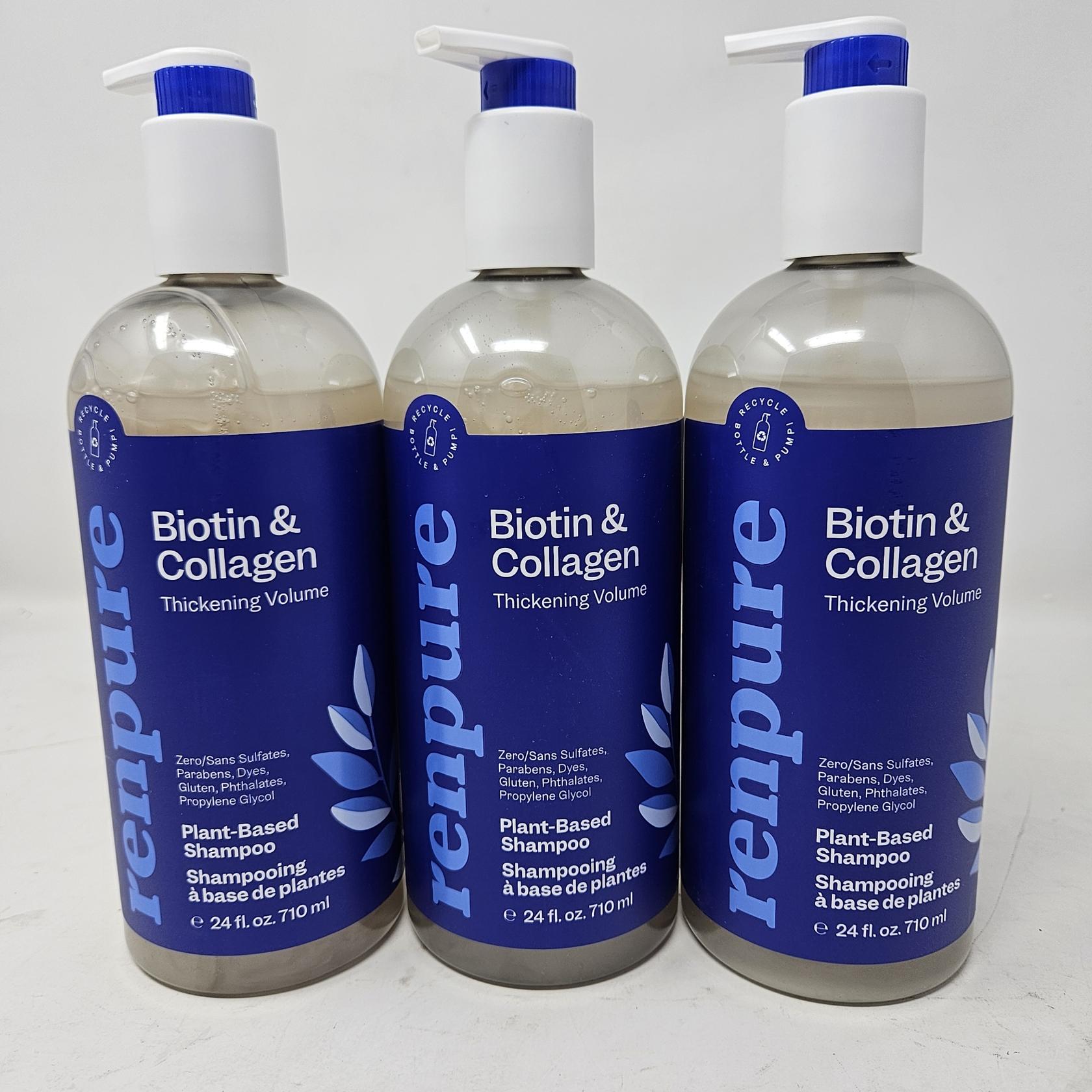 Lot of 3 - Renpure - Plant Based Biotin and Collagen Thickening Volume Shampoo