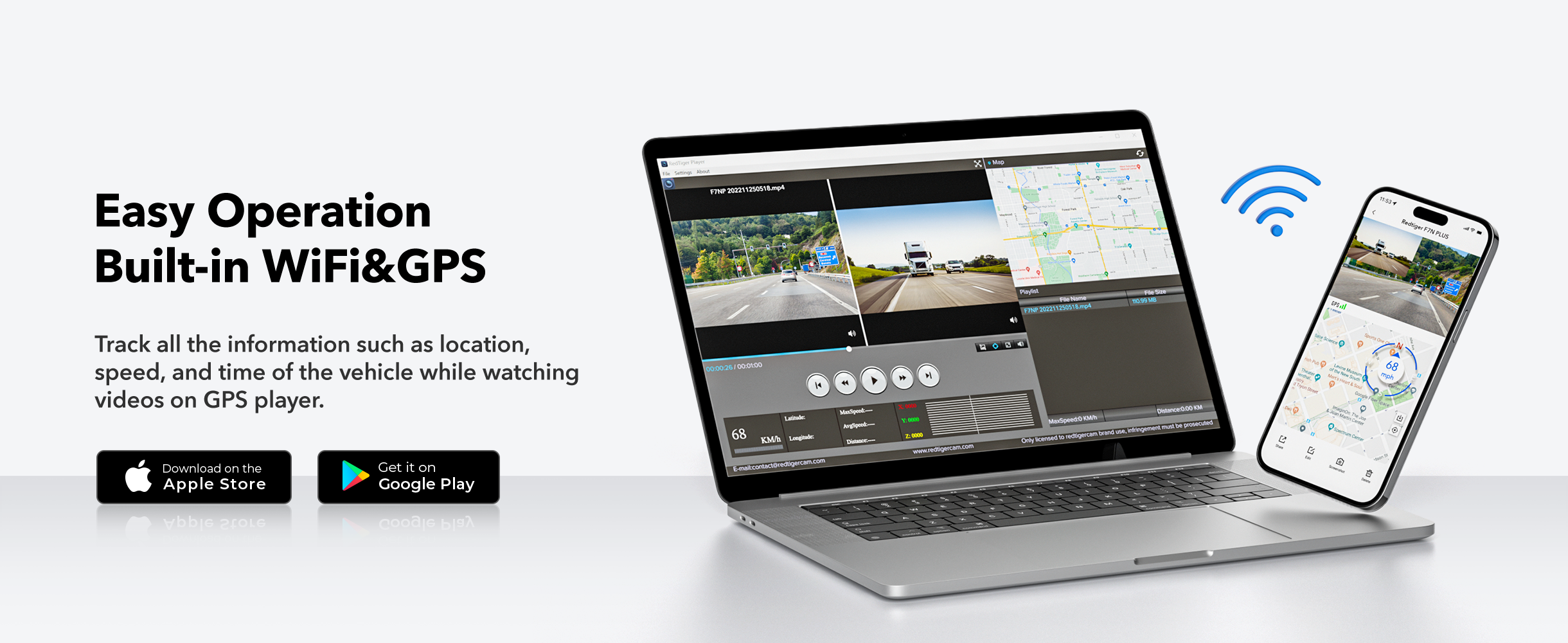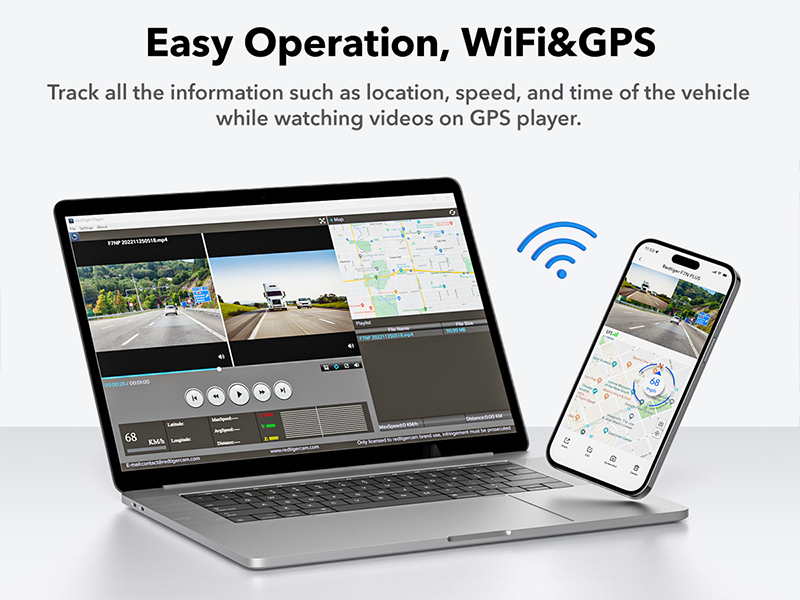 DASH CAM WITH GPS- This dash cam has a built-in GPS and records the driving route, real-time speed, location, etc. You can track on google maps via WiFi using the App or with our Windows and Mac GPSPlayer, which will provide further additional evidence if an accident occurs.