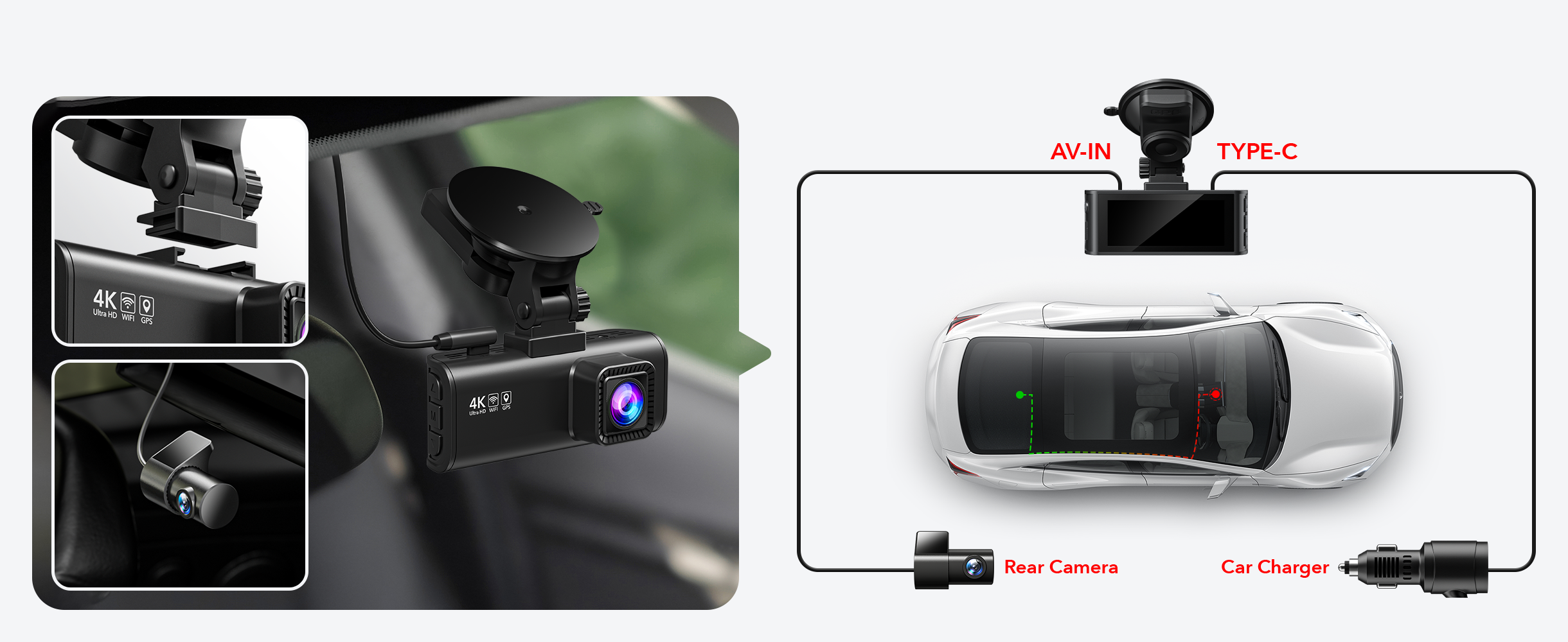 4K+1080P DUAL RECORDING- REDTIGER brings to you F7NP dual dash cam which records video of up to Ultra HD 4K(3840*2160P)+FHD 1080P resolutions. It helps you to read the key details like road signs, vehicle number plates etc. To reduce the blind areas it has the front wide angle of 170 degree and rear wide angle of 140 degree. This helps you during unexpected circumstances like collision to retain and present evidence.
