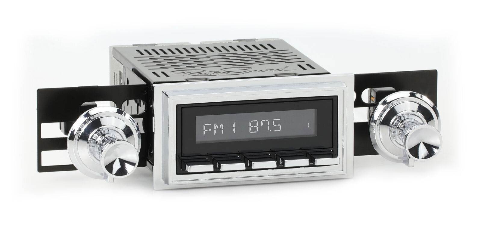 The RetroSound® Redondo-RT radio replicates factory radios in vintage 60s-70s Mopar vehicles that had thumb-roller controls. The radios display, thumb-rollers, and push-button assemblies can be adjusted independently during installation to achieve a factory-like fit.