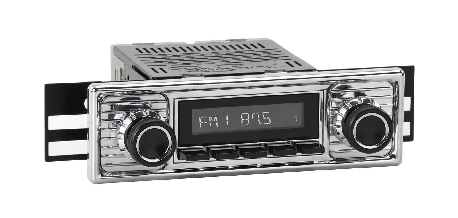 The RetroSound® RetroRadio® is our most versatile Radio Face, designed after traditional 2-shaft radios with classic push-buttons found in thousands of makes & models from the 40s-80s. Combined with hundreds of faceplates, bezels, and replica knobs, the RetroRadio is the most authenticsolution for adding modern audio to classic cars and trucks. The RetroRadio is available in black or chrome, with the choice of black, chrome, or ivory push-buttons.