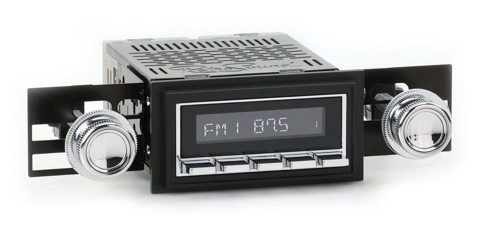 The RetroSound® RetroRadio® is our most versatile Radio Face, designed after traditional 2-shaft radios with classic push-buttons found in thousands of makes & models from the 40s-80s. Combined with hundreds of faceplates, bezels, and replica knobs, the RetroRadio is the most authenticsolution for adding modern audio to classic cars and trucks. The RetroRadio is available in black or chrome, with the choice of black, chrome, or ivory push-buttons.