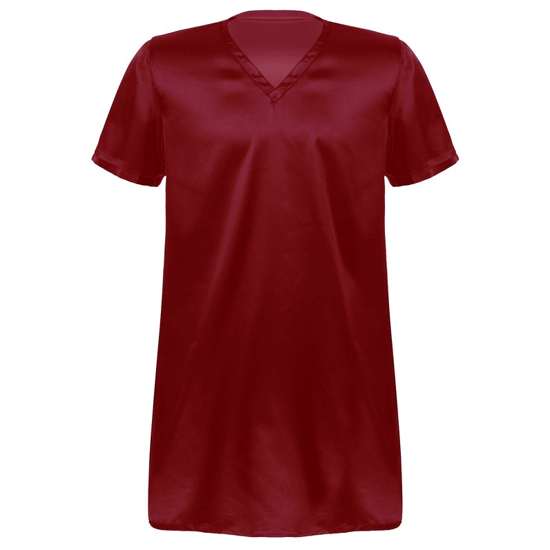 Unisex V Neck Short Sleeve Sides Split Nightwear.
