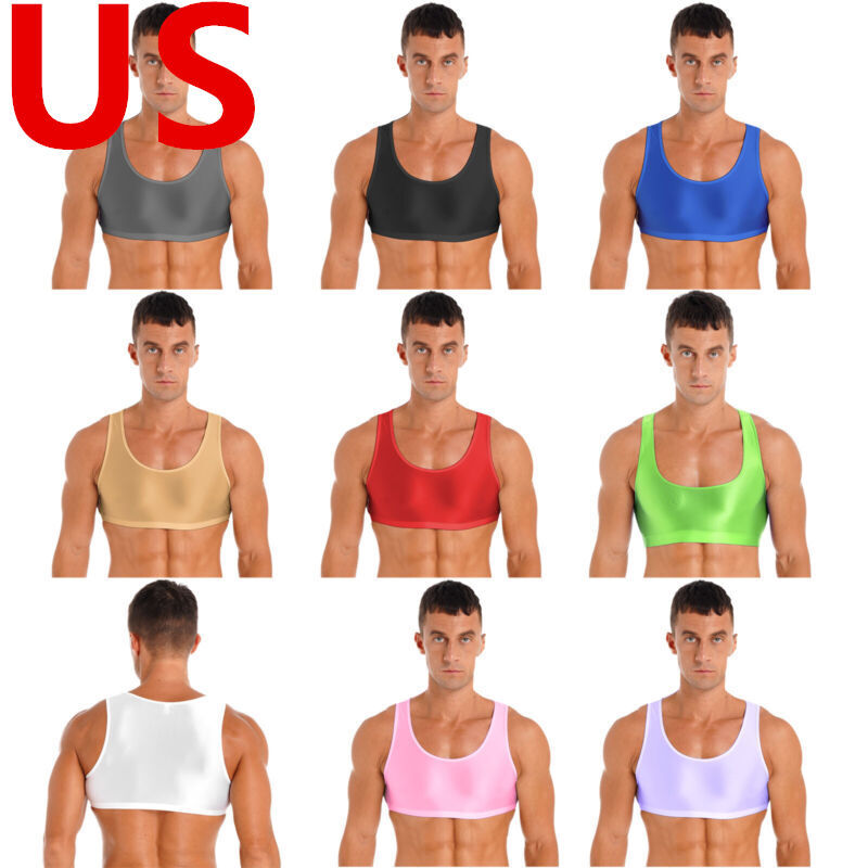 Men’s stretchy crop tops, solid color, can be worn over a bra or tank.