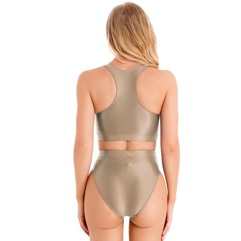 Glossy appearance briefs, high waist with elastic waistband for comfy fit.