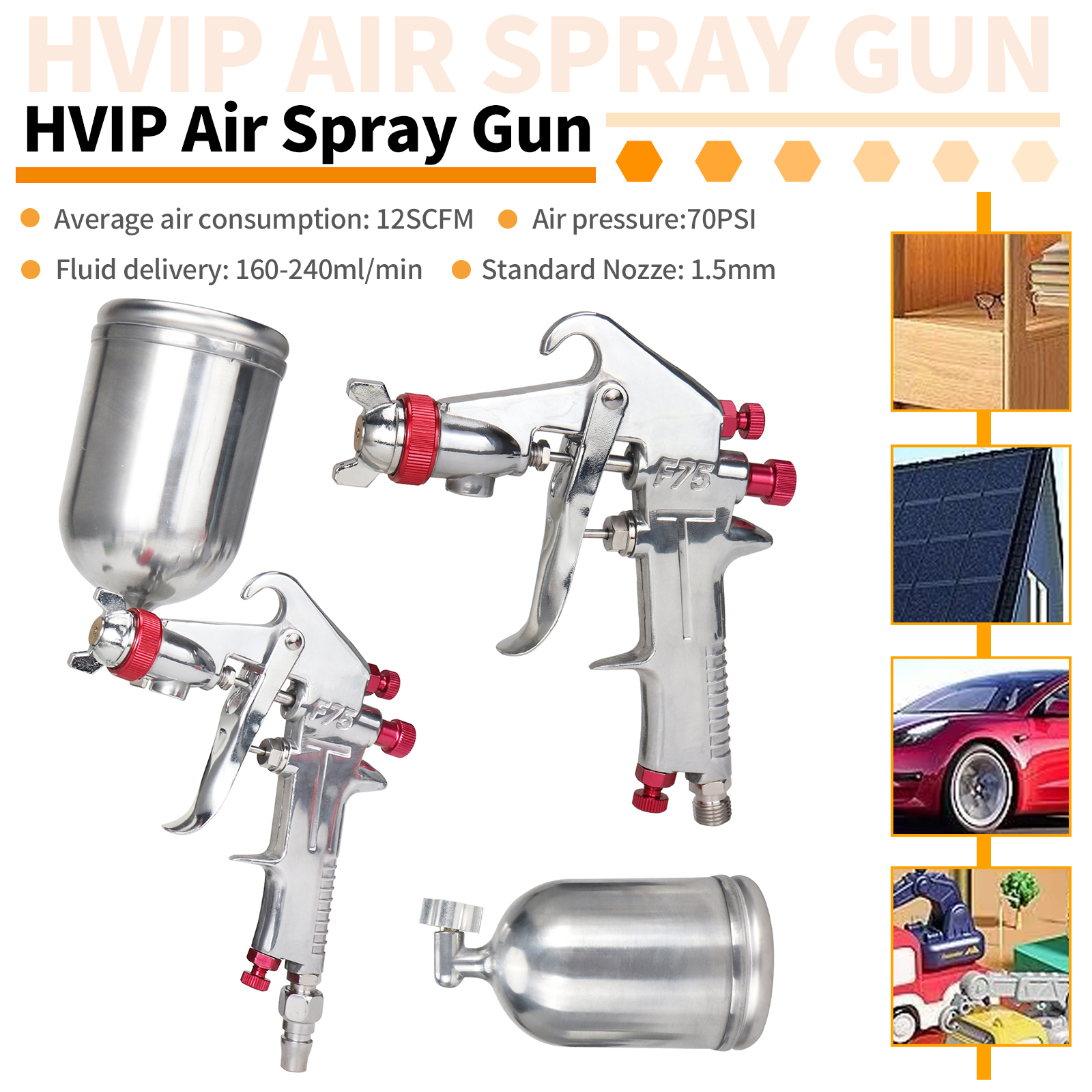 HVLP technology provides high material transfer efficiency, eliminates paint waste and requires lower air volume, so you never have to worry about making a mess or wasting paint, and save money by using HVLP spray gun on material cost.