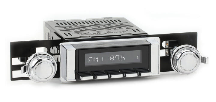 The RetroSound® RetroRadio® is our most versatile Radio Face, designed after traditional 2-shaft radios with classic push-buttons found in thousands of makes & models from the 40s-80s. Combined with hundreds of faceplates, bezels, and replica knobs, the RetroRadio is the most authentic solution for adding modern audio to classic cars and trucks. The RetroRadio is available in black or chrome, with the choice of black, chrome, or ivory push-buttons.